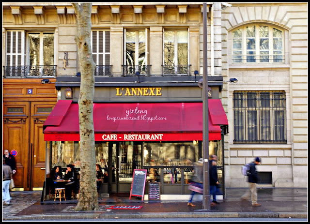 反正也是午餐时间,我们便在圣礼拜堂入口对面的一家餐馆,L'Annexe用餐。今天餐单的特别推荐是牛扒,才欧元十三块八一客(马币约五十七令吉),就吃这个吧!有一个装满酥脆法国面包的小铁桶就不说了,牛扒煮得刚好,肉质鲜嫩多汁,伴上薯条沙拉,这餐吃得出乎意料地满足(因为对旅游景点附近的餐馆没抱着太大的希望,所以吃到好吃的食物还挺开心的)。