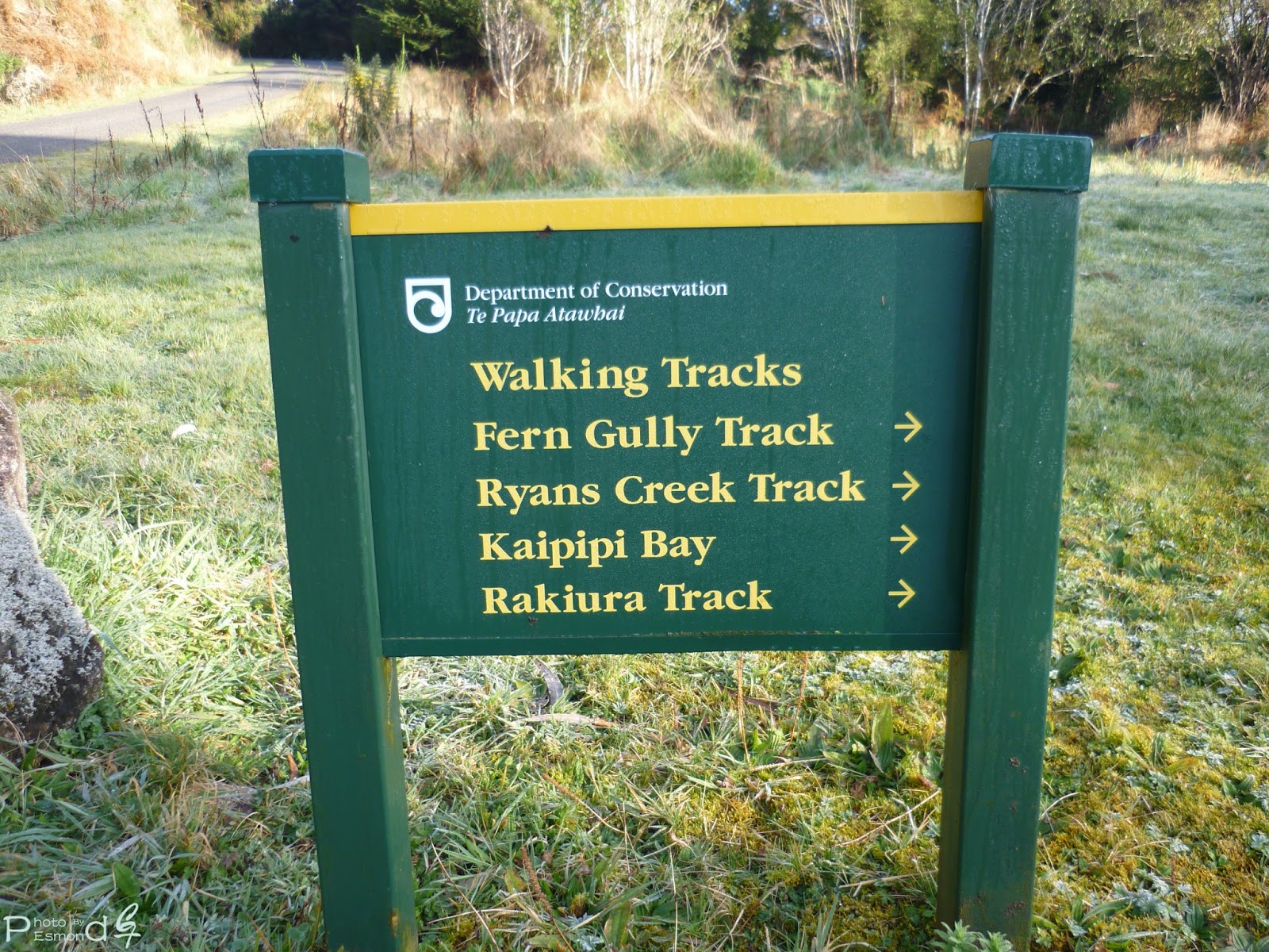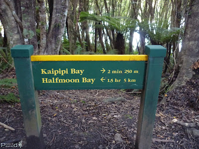 其实Stewart Island有许多不同难度和长度的步道,Rakiura Track是其中一个比较简单和短的步道了,有些步道甚至可以环绕整个岛哦!走着走着就走到步道的出入口了,开始进入森林咯!!!