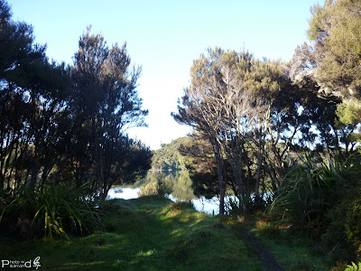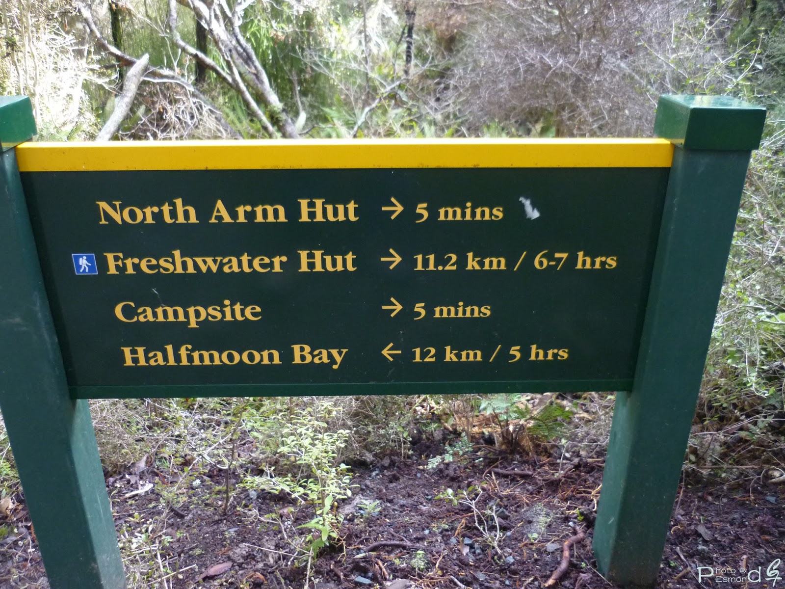 今天的目的地就是距离出入口11公里的North Arm Hut,预计费时4小时多。由于行程没有太长,也不受地形的限制如海水退潮,基本上,我们都是慢慢的走,看到漂亮的景色就会停下来拍照。步道的景色还是以树林和海为主。