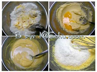 3) 將面粉、糖、雲呢拿香油和檸檬汁混合拌勻成汁液;