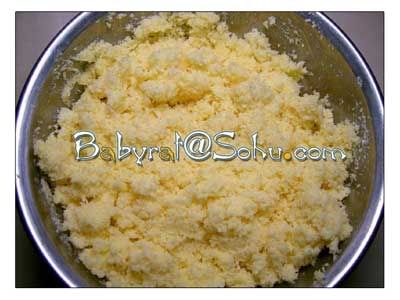 3.將麵糰過篩呈粗粒狀,灑高粉,使其不再沾黏,入冰箱冷藏備