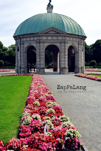 那里还有一个花园- Hofgarten, 里头的主要建筑就是象徵月亮和狩猎的希腊神话女神, 狄安娜的神殿, 和前方的喷水池。