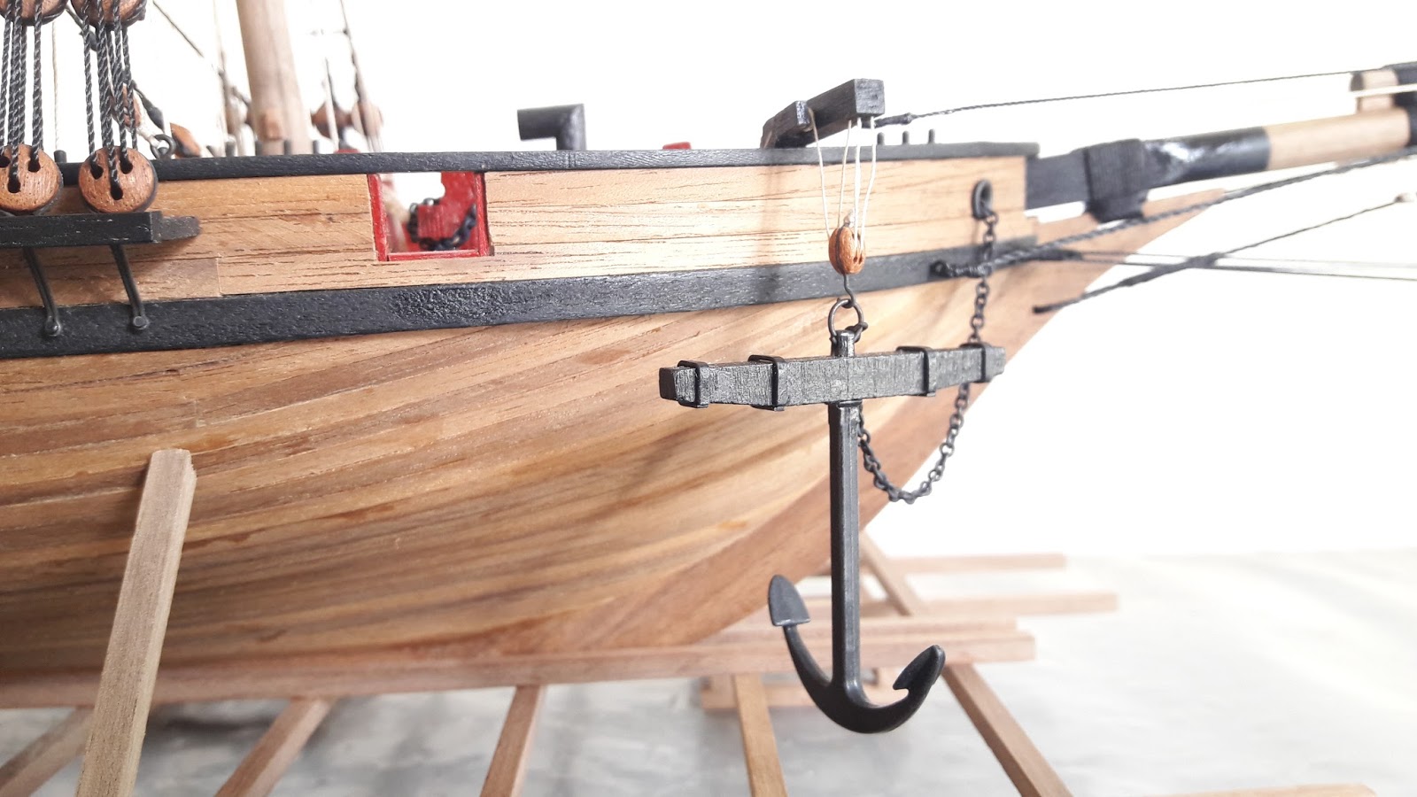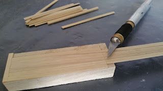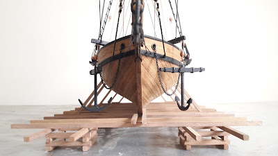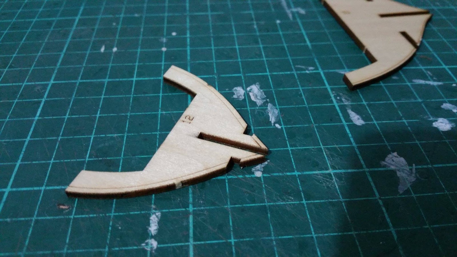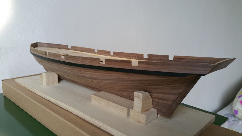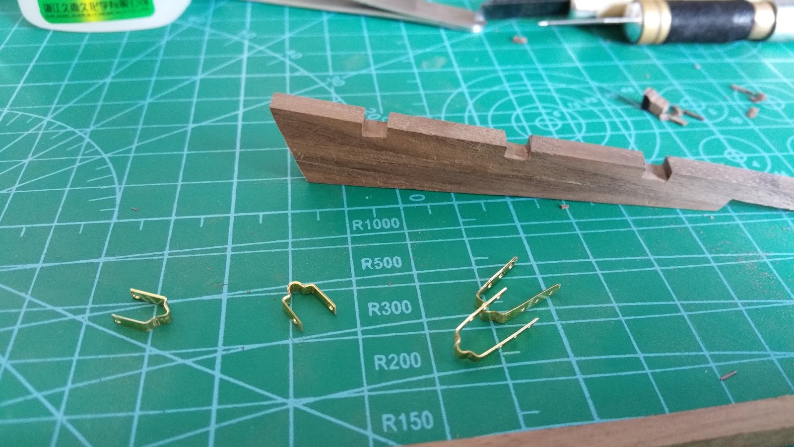 接下来就是要把炮门切出来。这kit还算不错,有给买家炮门的方木块,方便我们画下边框。 切下后~~ 这模型有一部分没做好,就是船身木条比真正船身还短...大概还差一寸。下图的那尖角块就用来“加长”船身...看起来有点怪怪的