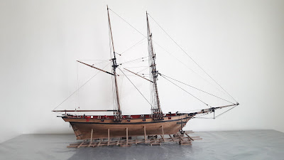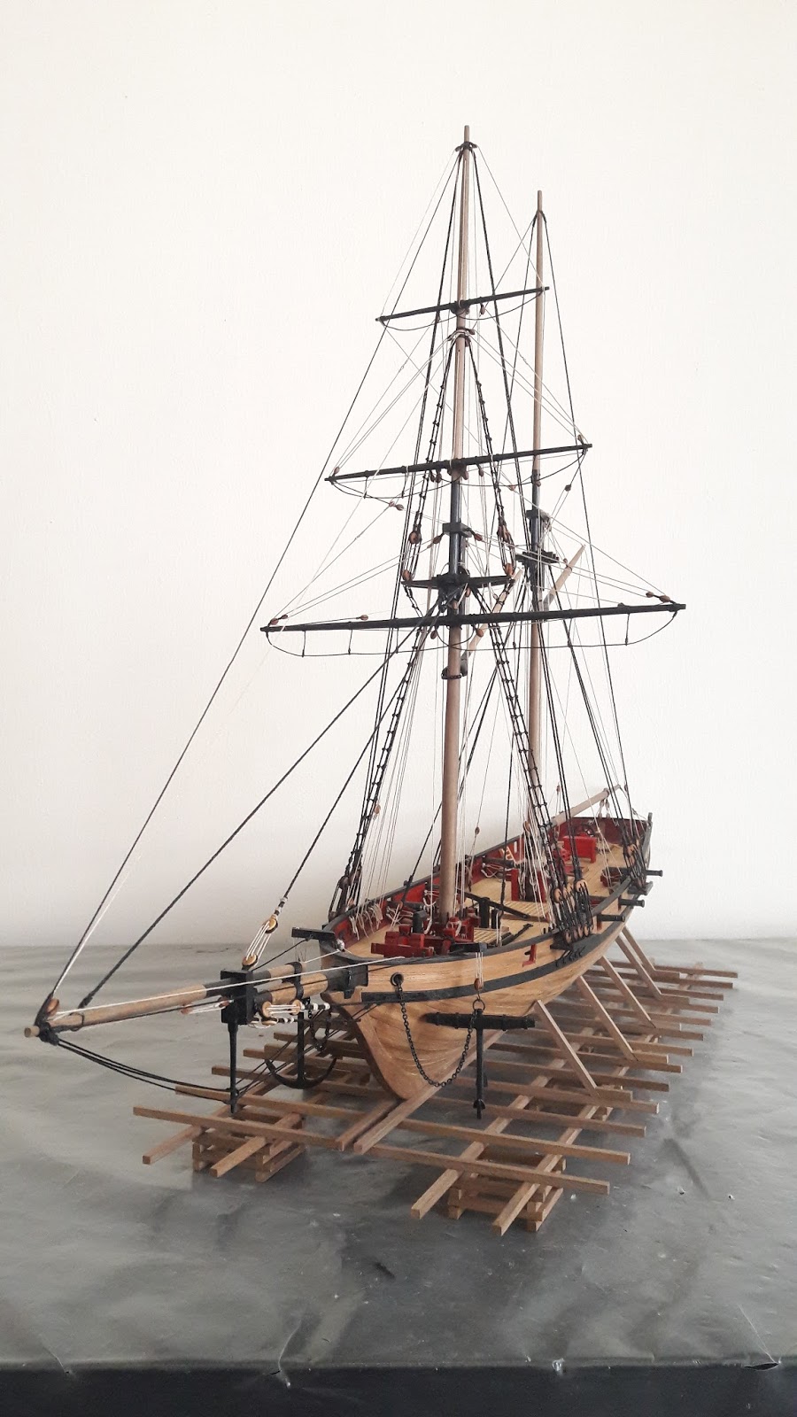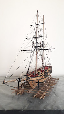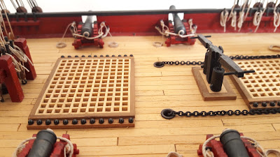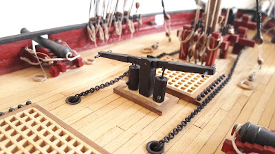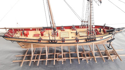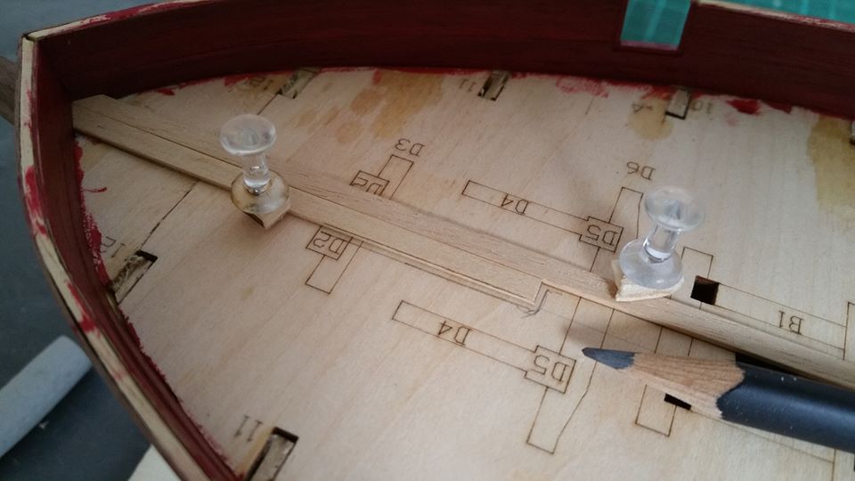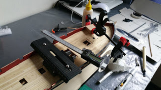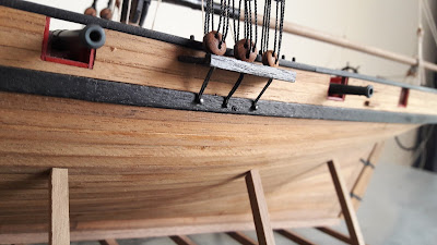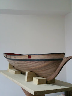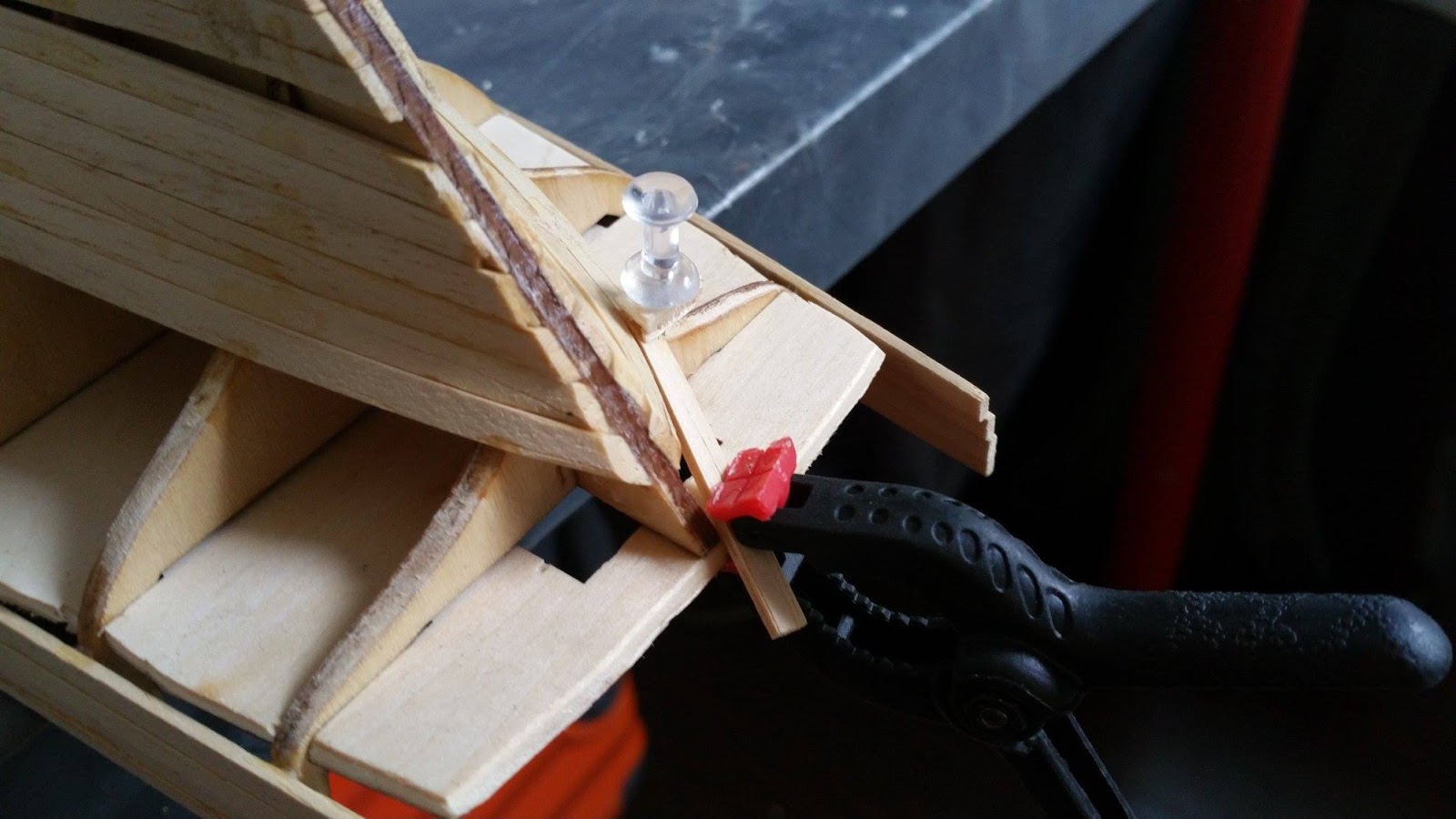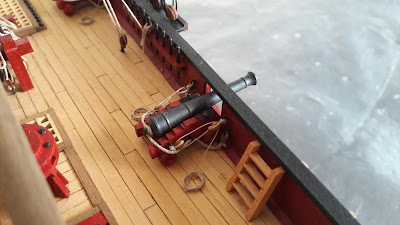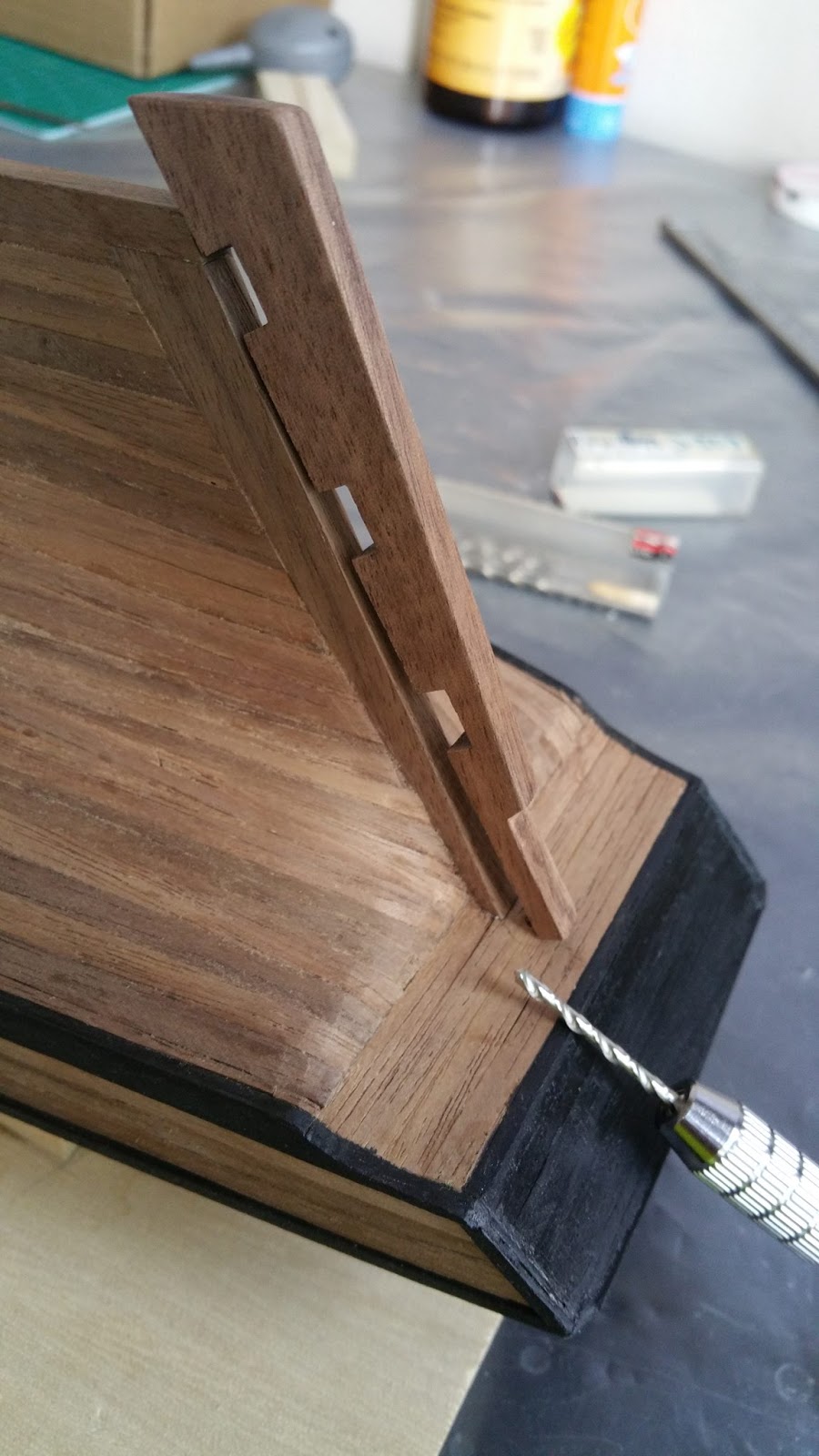 接下来就是要把炮门切出来。这kit还算不错,有给买家炮门的方木块,方便我们画下边框。 切下后~~ 这模型有一部分没做好,就是船身木条比真正船身还短...大概还差一寸。下图的那尖角块就用来“加长”船身...看起来有点怪怪的