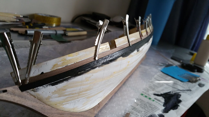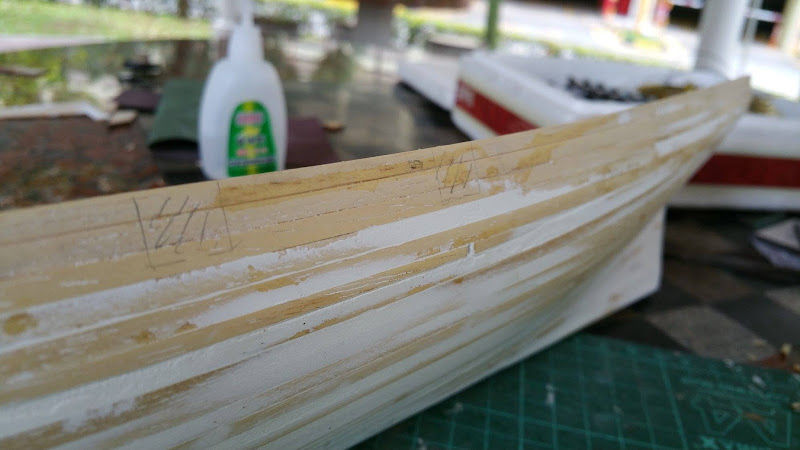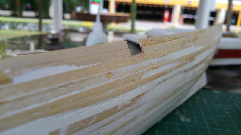填补和打磨过程不算太难,只需要确定船身不会凹凸不平就好。由于补土干后会变得很粉,导致我必须到家外做...