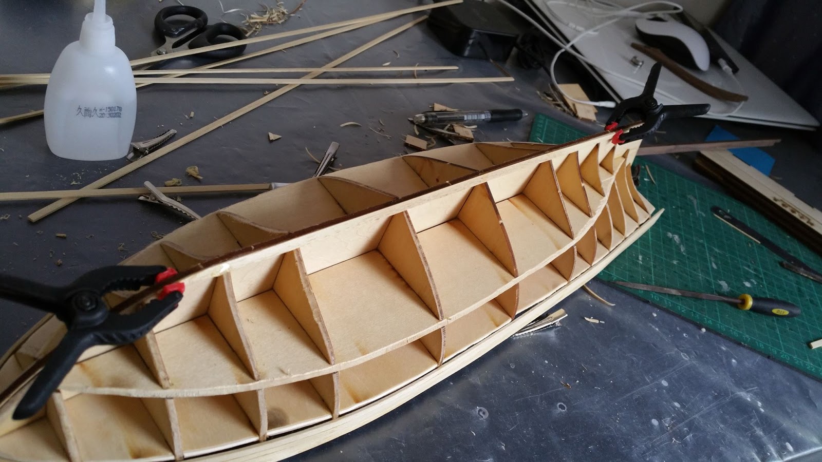 补补磨磨之后,接着就可以把较美的木料再plank上了。
