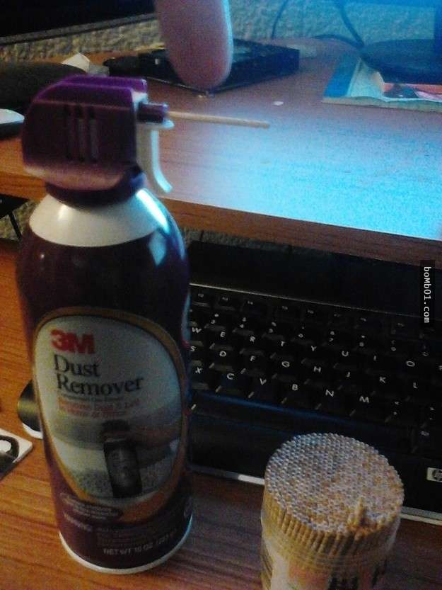 ▼9. 如果你有牙签和飞镖的话,可以插在喷雾罐上,制作临时手枪。