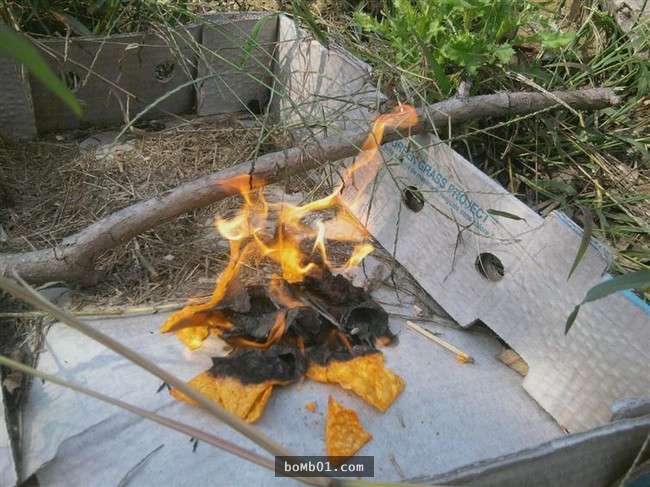 ▼12. 用零食如洋芋片生火,它们很容易燃烧。