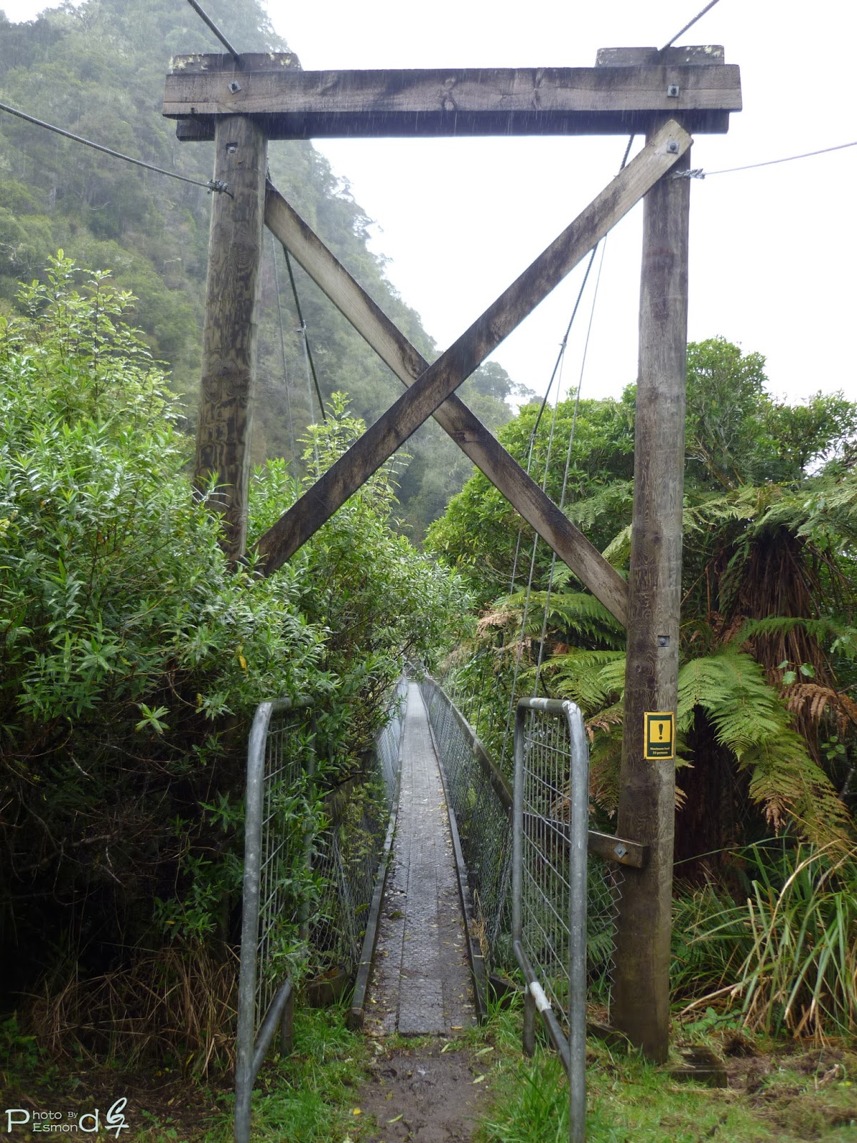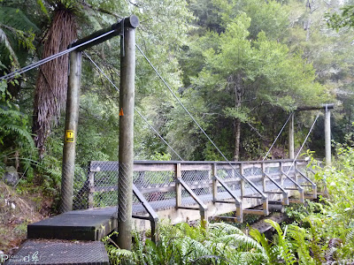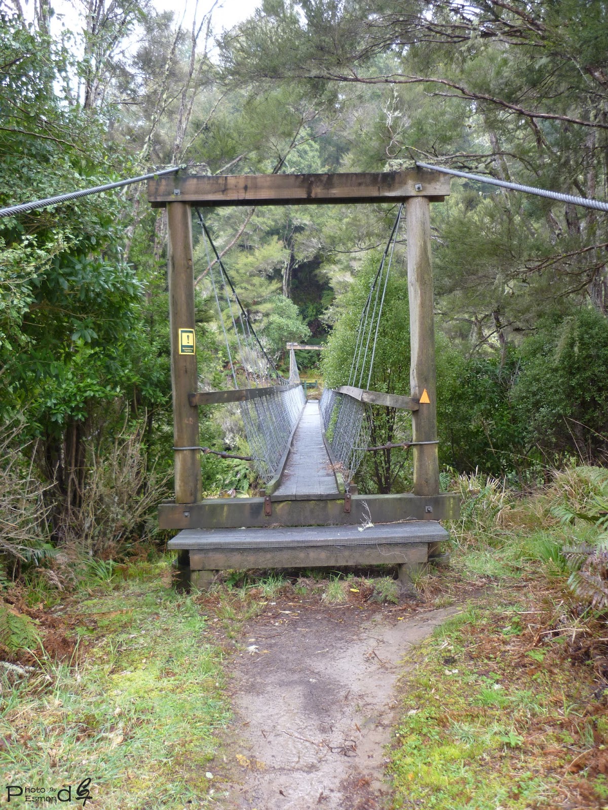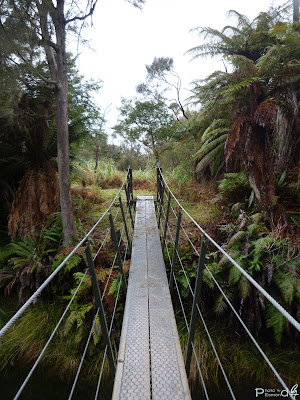 这个步道的最尾端就是纽西兰经典式的吊桥,这个吊桥就是连接步道和外面的公路。走过了这个吊桥就抵达步道的出口--Hopuruahine Landing。这里有一个小亭子给公众避雨,路边也停了一些的车子,也有一些人是从这里进去步道哦!必须再次提醒,现在这个吊桥暂时关闭,健行者需要走到更远的另一个出口,不然就需要安排水上德士来接自己,相关的详情还请留意官方网站。