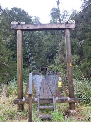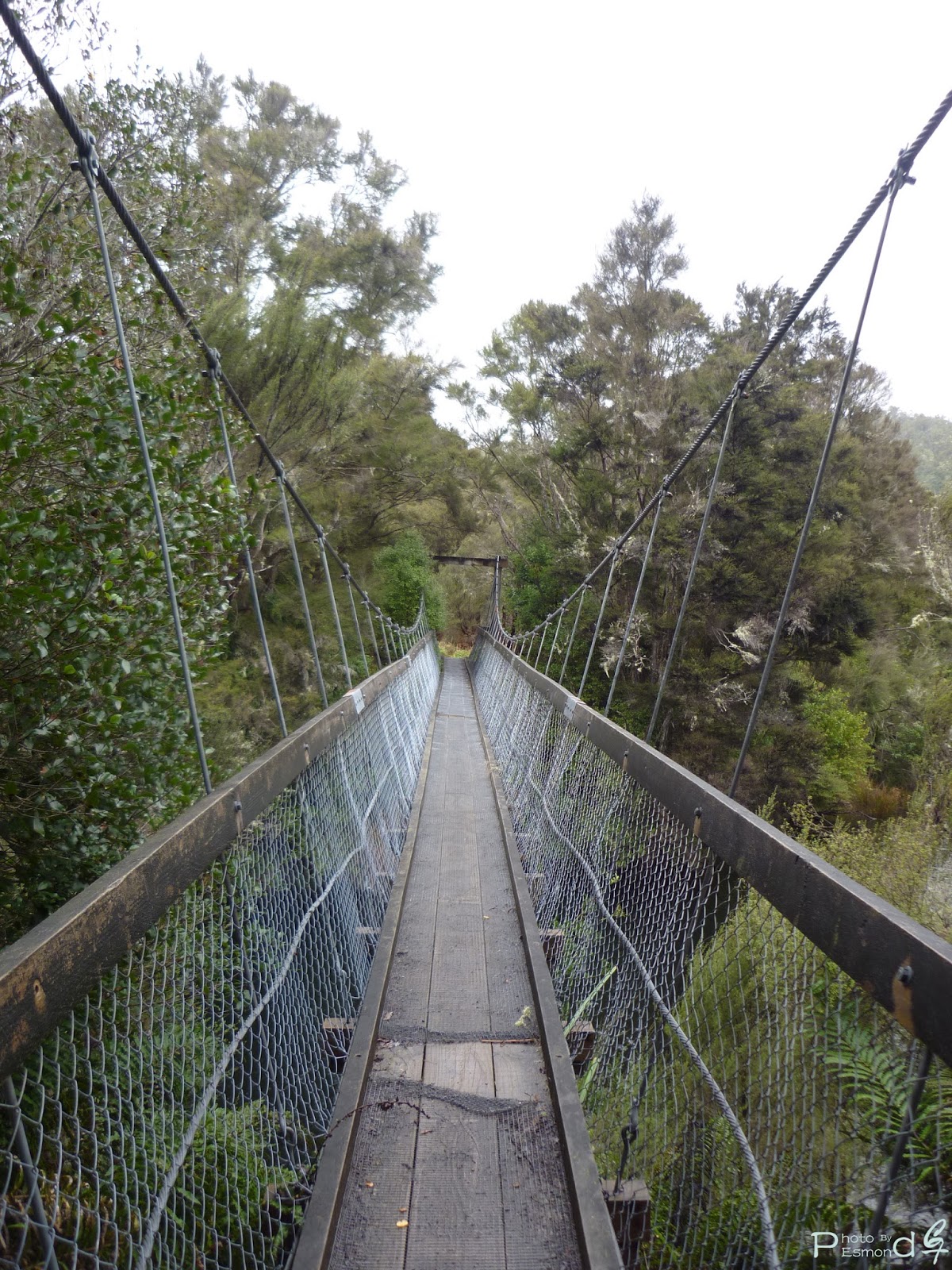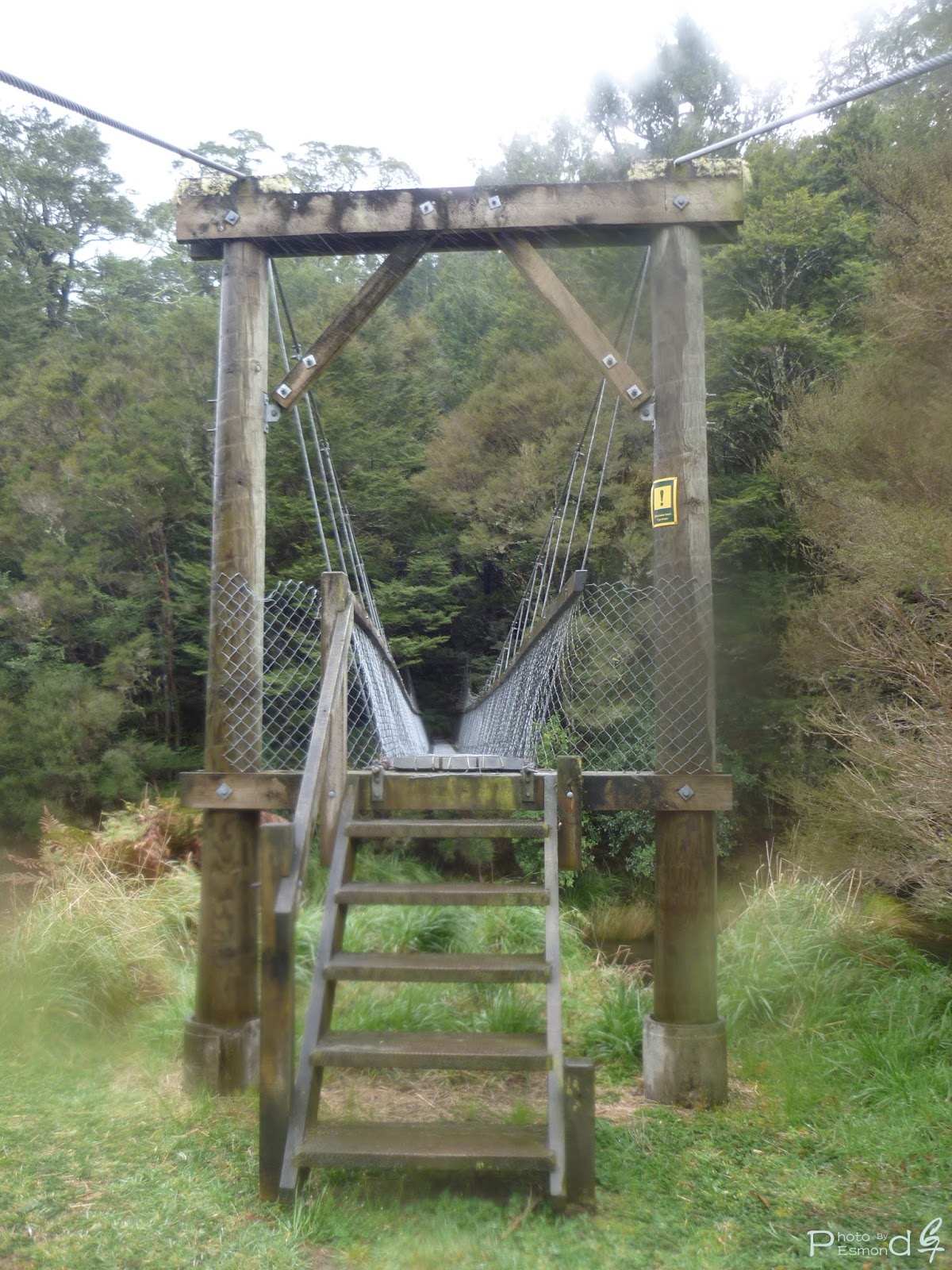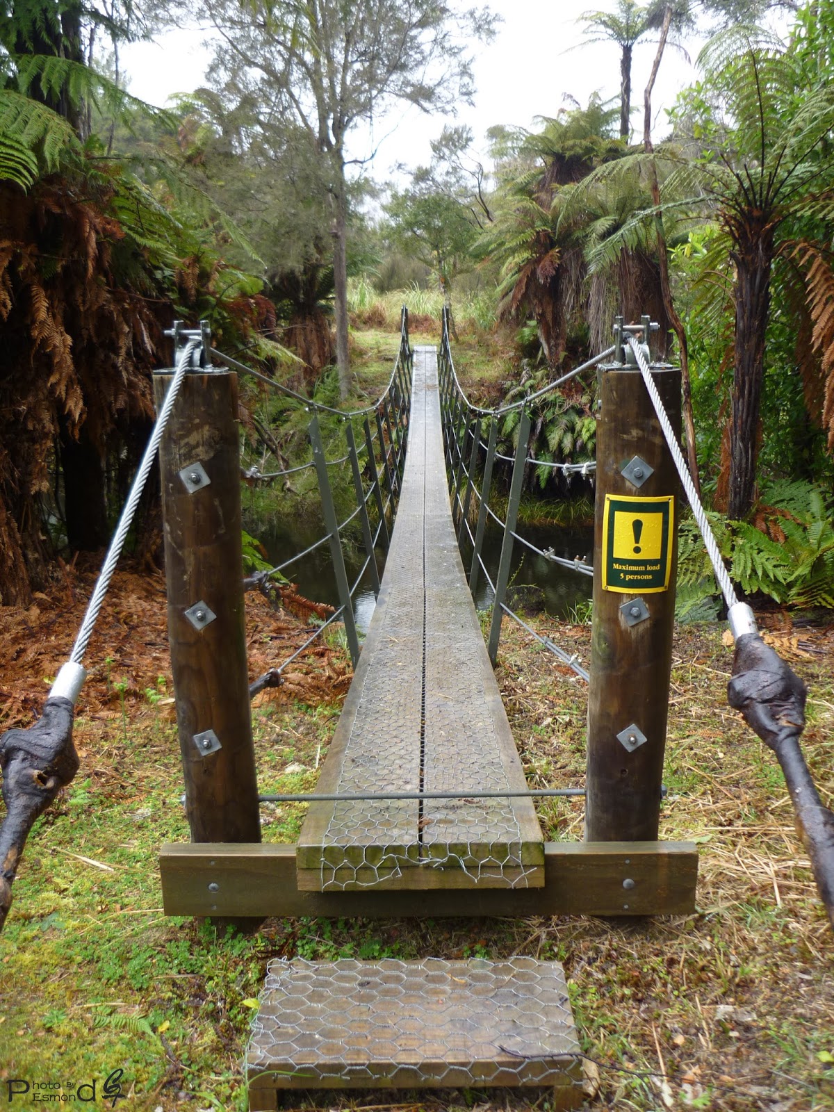 这个步道的最尾端就是纽西兰经典式的吊桥,这个吊桥就是连接步道和外面的公路。走过了这个吊桥就抵达步道的出口--Hopuruahine Landing。这里有一个小亭子给公众避雨,路边也停了一些的车子,也有一些人是从这里进去步道哦!必须再次提醒,现在这个吊桥暂时关闭,健行者需要走到更远的另一个出口,不然就需要安排水上德士来接自己,相关的详情还请留意官方网站。