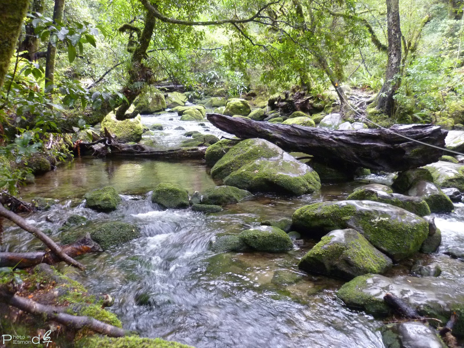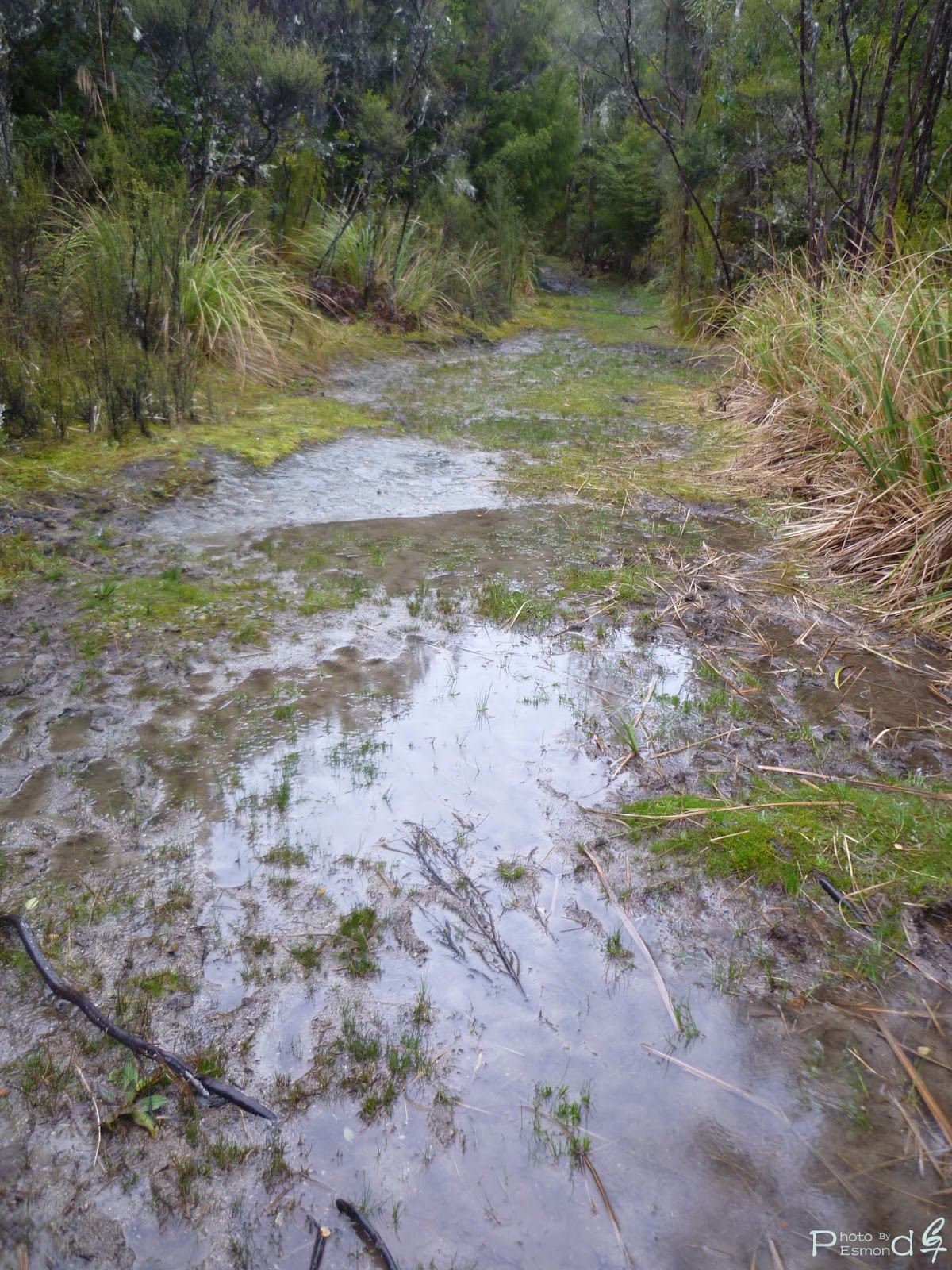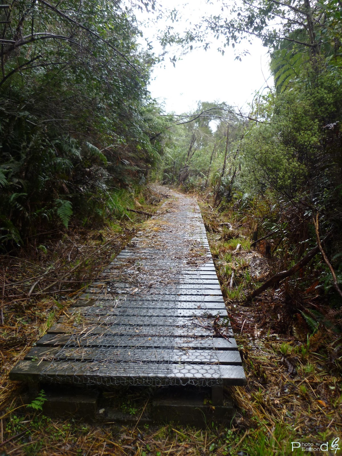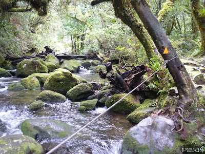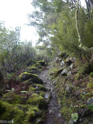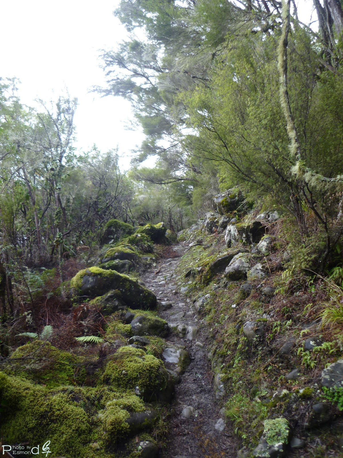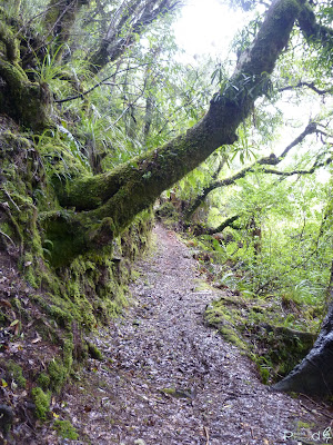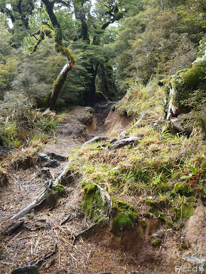我就这样的一面淋雨一面赶路,心想,这个步道还真的是我走过的步道中遇上天气最差的一次,四天的步道除了最短的第二天,其他的天我都需要冒着雨或融化的水滴前进。。。诶,怎么说这也是我这次纽西兰之旅的最后一次健行,也是这次纽西兰之旅的最后一项活动,就不能给一给面子哦???没想到,雨竟然。。。下的更大了!!!好,我忍,我淋,我走。。。