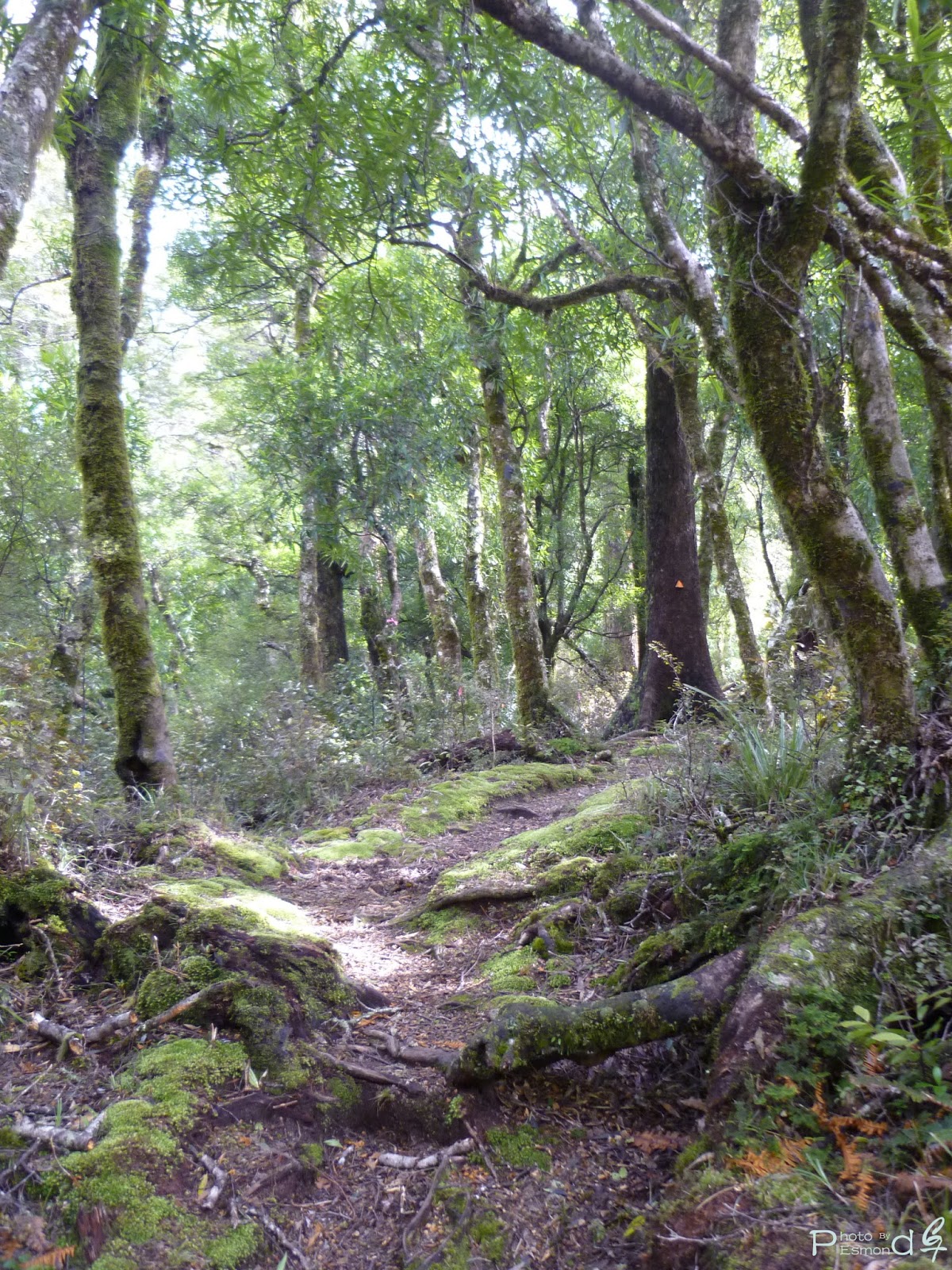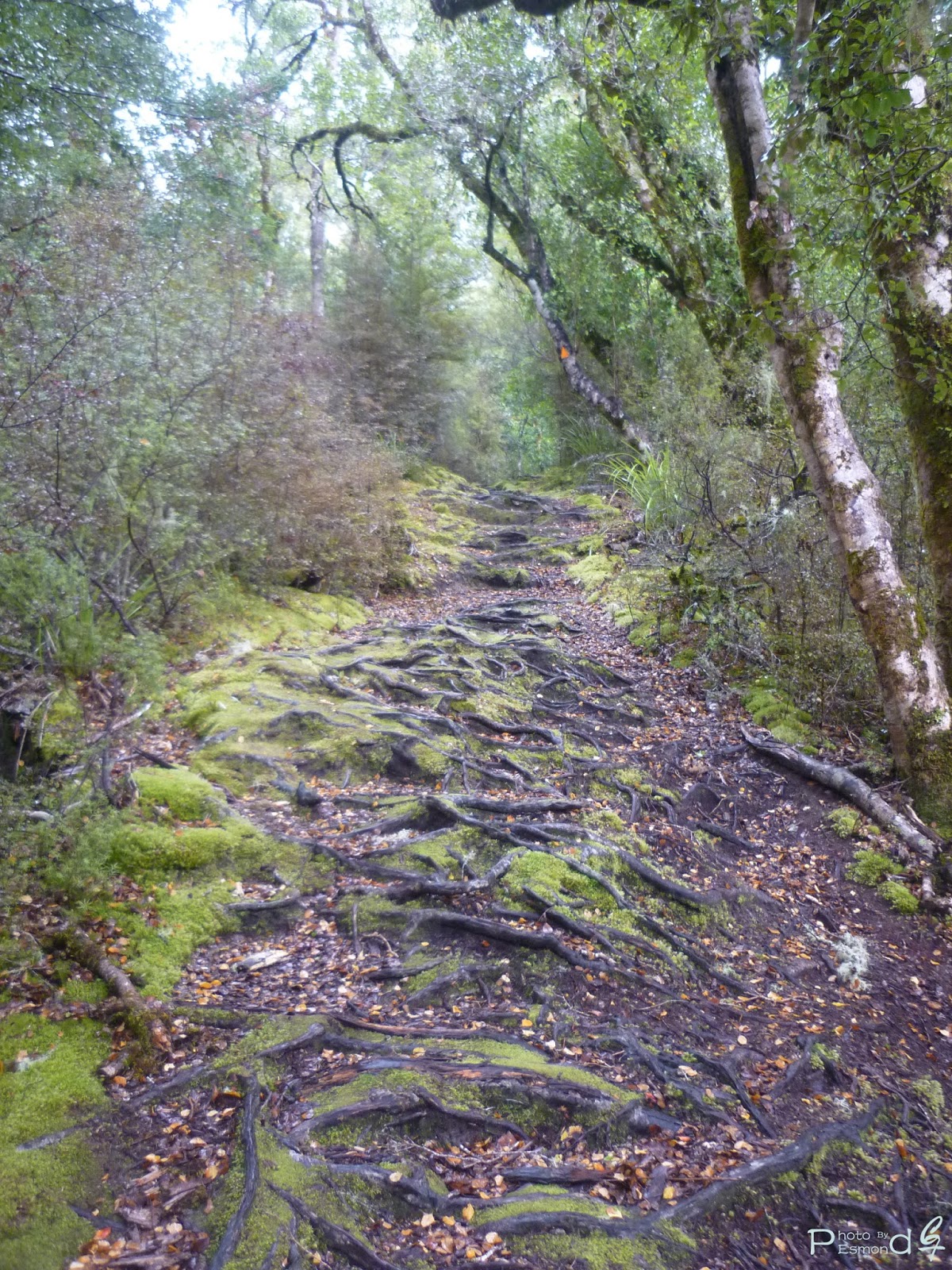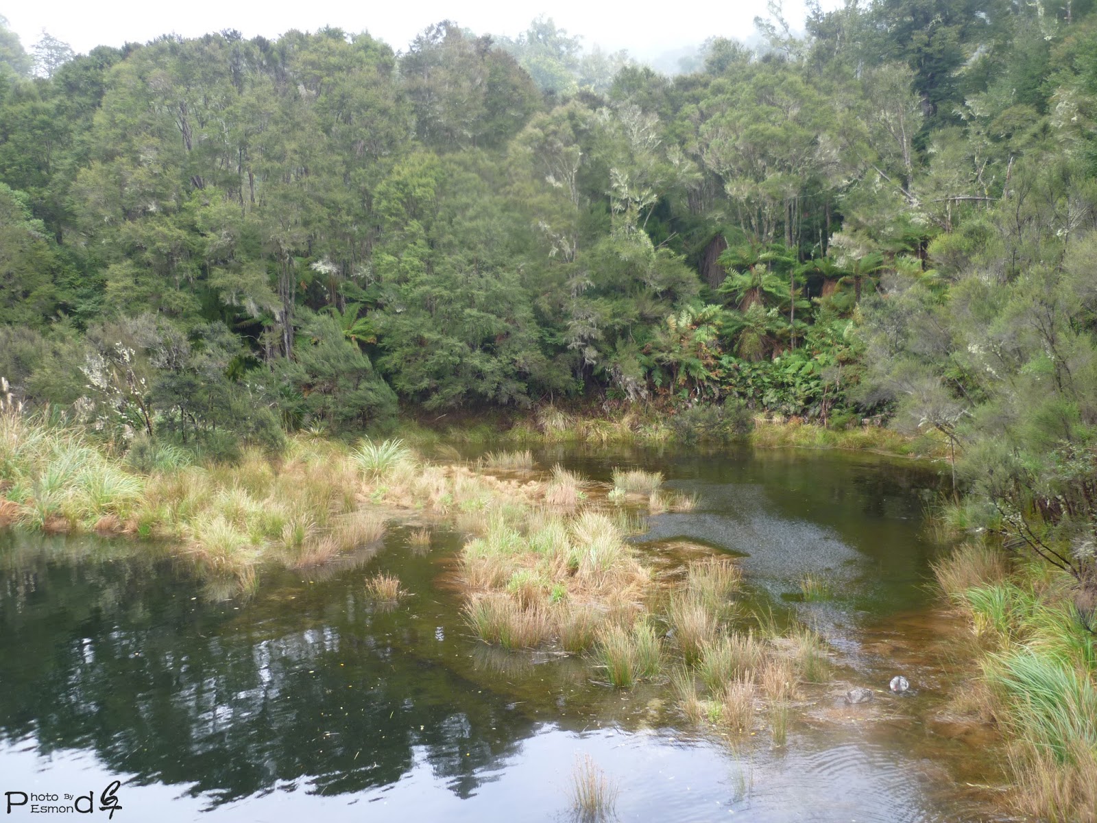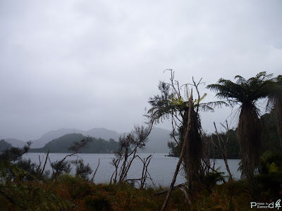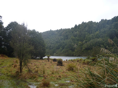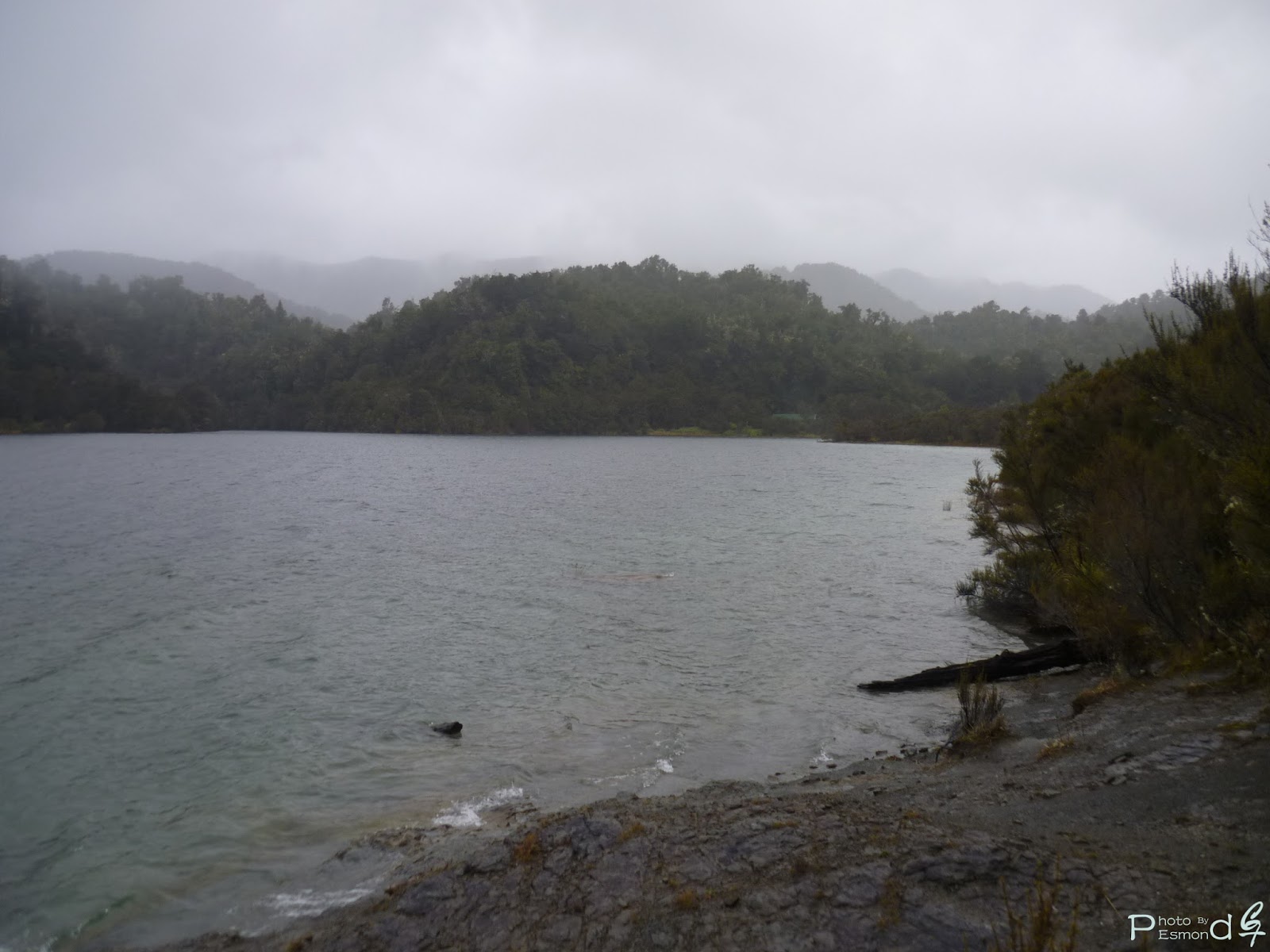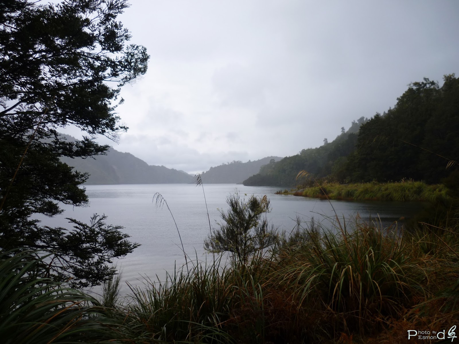 今天的天气不是太好,一眼望去都是乌云满天,偶尔走着走着还会下起纽西兰式的绵绵细雨。。。何为纽西兰式的绵绵细雨?这里的细雨真的是很细,很多时候我都没发现原来已经下雨了,都是看到外套湿了才发现。。。一路上都是穿过树林前进,偶尔还会经过湖边哦!