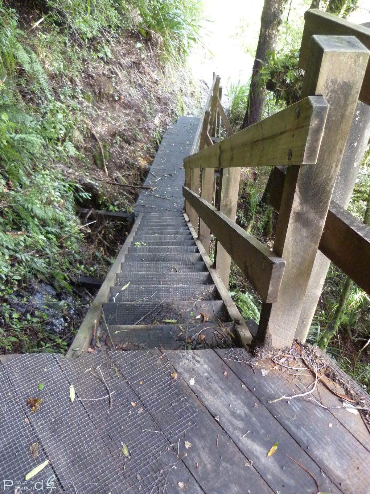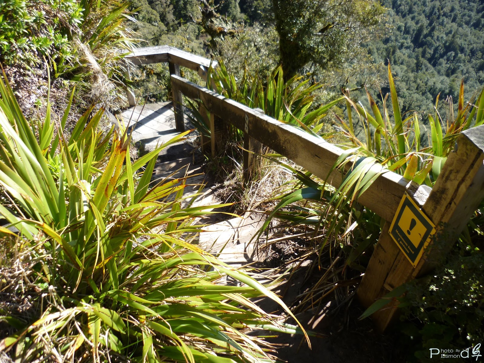 这一段步道因为是下山步道的关系,一路上多了许多梯阶。当然这些梯阶都不必第一天看到的那个梯阶那么令人害怕,至少这里的梯阶都没有显示限重一个人的牌子。。。