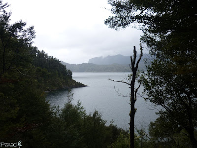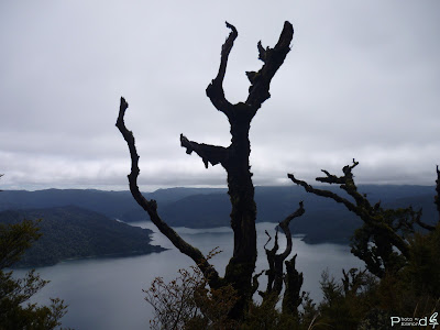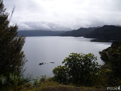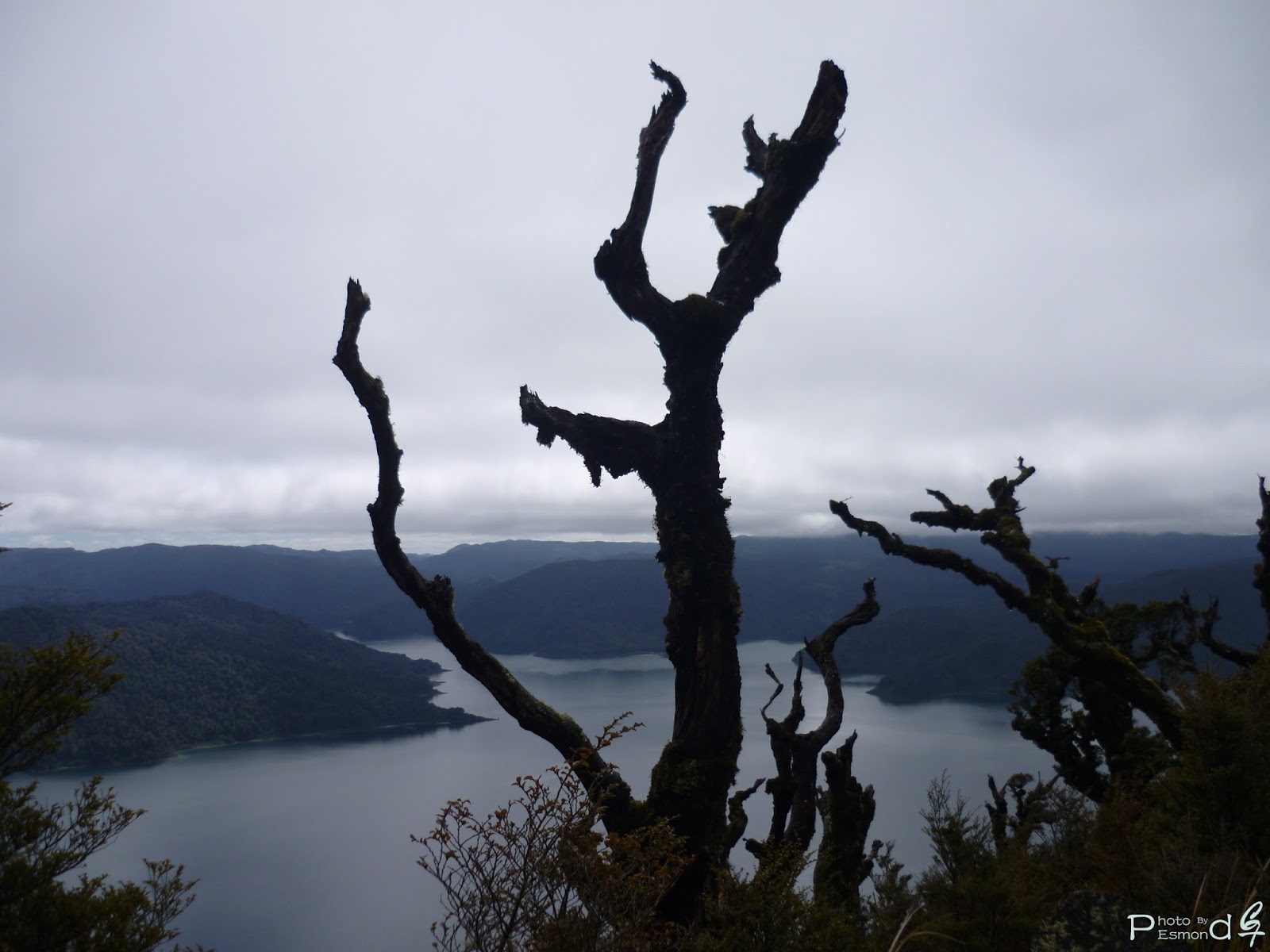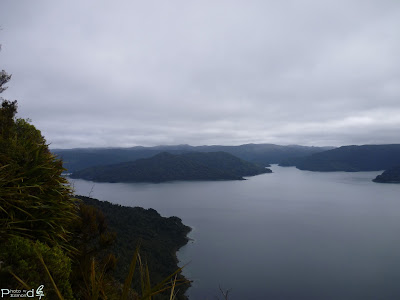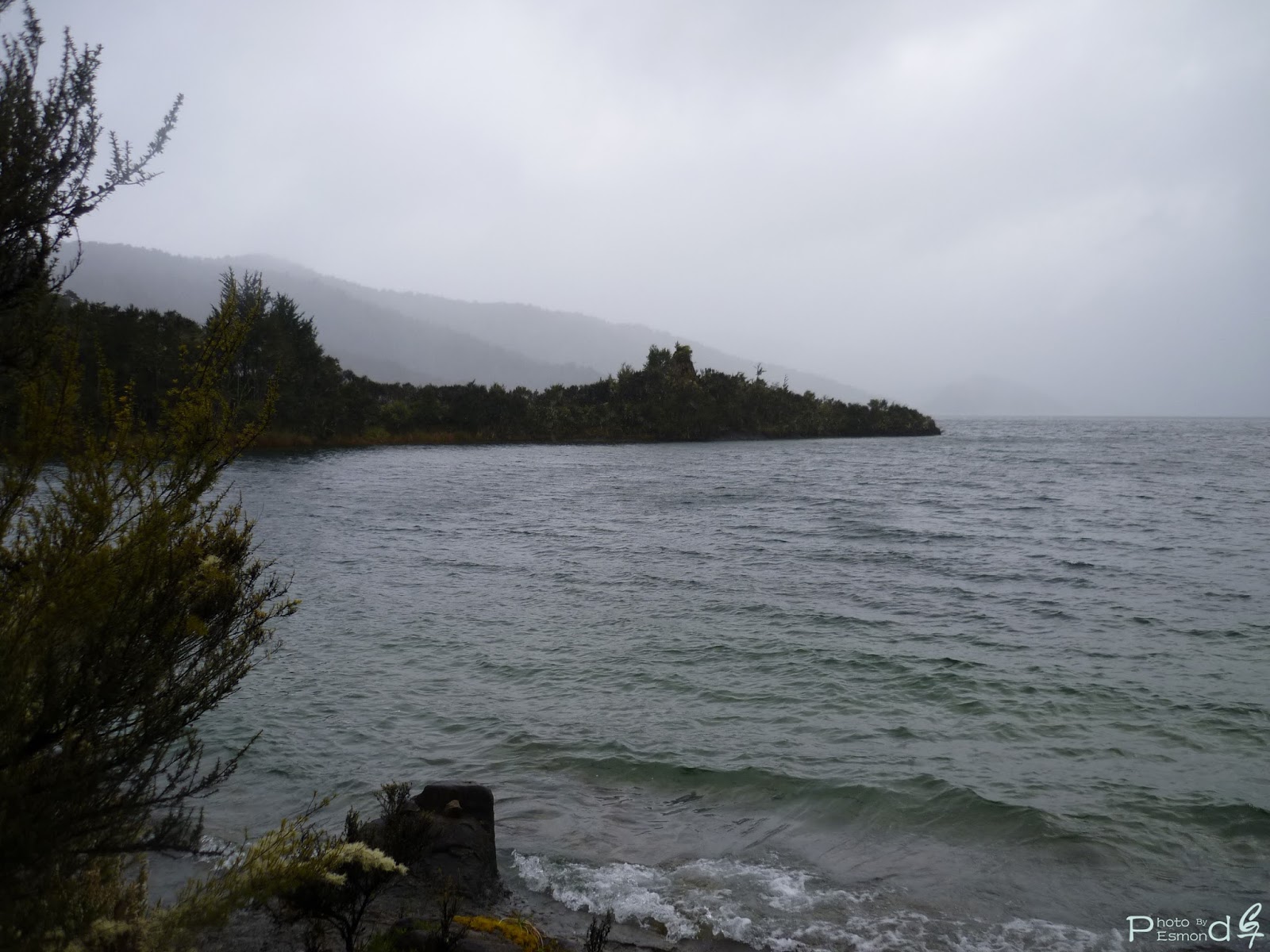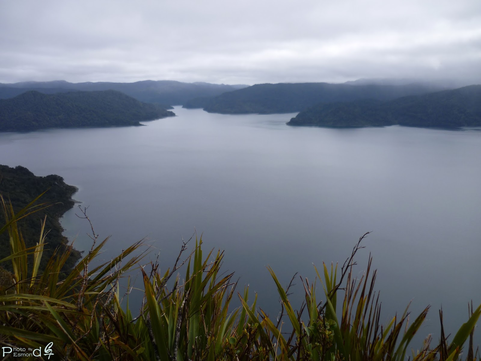 今天这一段步道主要是上山路,基本上都是沿着树林上山,然后沿途都可以从山上望去旁边这个大大的湖--Lake Waikaremoana。一路上山时,天空还是维持着乌云满天,我只希望不要下起倾盆大雨就好了。。。