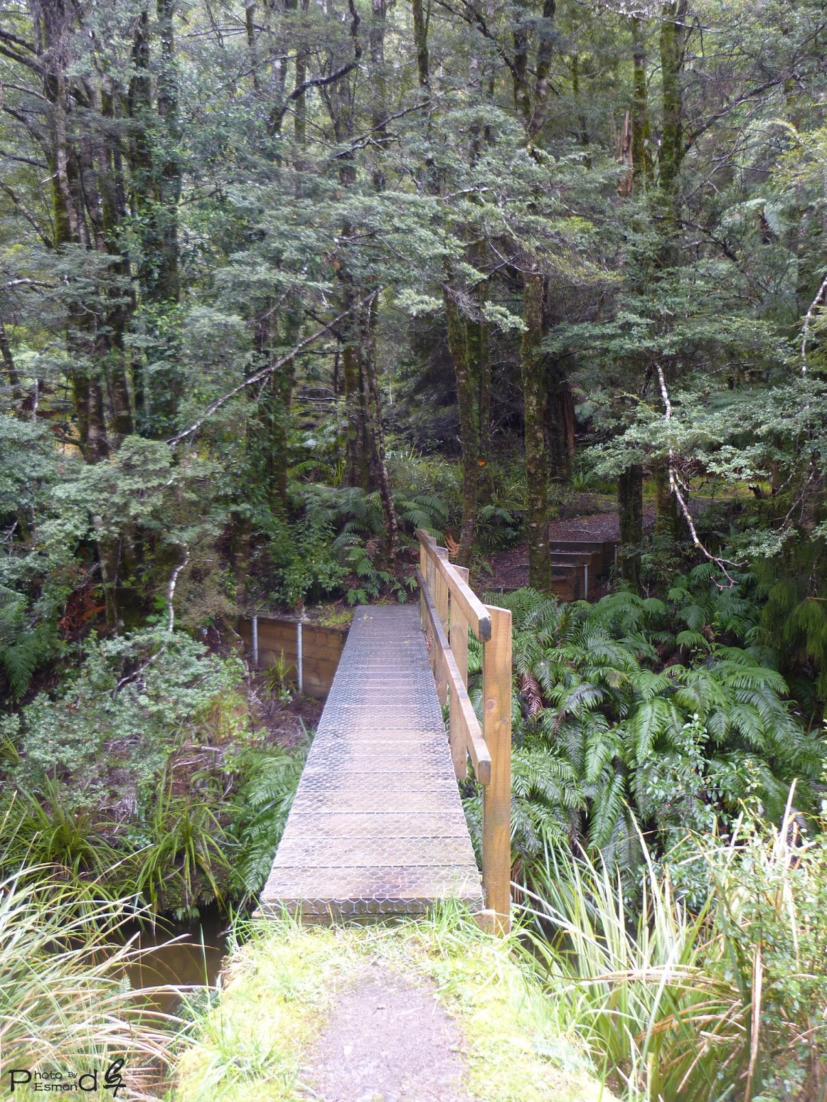 看过了瀑布,我继续沿着步道前进。今天的步道景色仍然以树林和湖为主,除此之外也多了许多木桥和吊桥。说真的,我来纽西兰的九个月,走的吊桥比我之前在大马都来的多。中途经过一个属于私人的屋子,相信这些屋子应该是他们的度假屋吧,几时我也可以在这样的环境有一间度假屋,偶尔驾船进来这里渡假啊???哈哈,发梦没那么早,还是专心赶路吧!!!