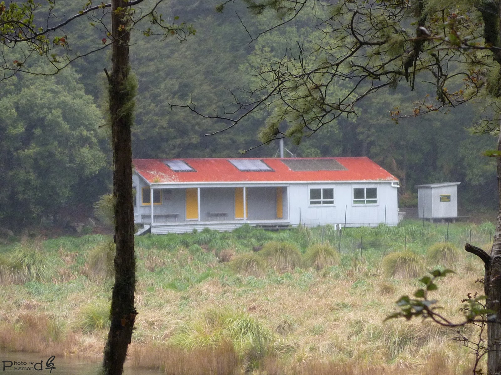 终于我看到今晚住宿的Waiharuru Hut了。。。天啊,我终于不用在淋雨了。。。Waiharuru Hut看起来蛮新的,有两个建筑物,一个是睡觉的屋子,另一间则是给住宿的住客活动的屋子。今晚我不是孤单一人住在这里,抵达时就已经有两个人住进来了,他们是乘船进来,然后在这里钓鱼的。除了他们俩,没多久这间Hut就来了一大批健行者,看起来应该是学生,他们是从另一个入口走到这里的。顿时,这间Hut热闹非常。。。这是我在纽西兰健行以来,遇上最多人的一次。。。