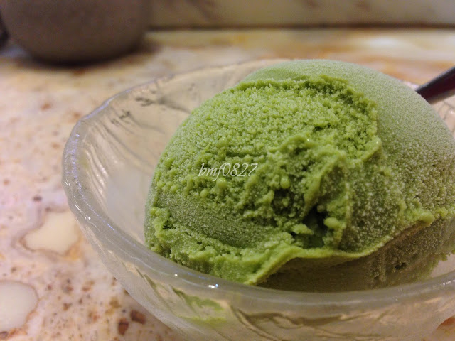 这里的雪糕有三种选择,芝麻、绿茶和 Peach Sorbet。 绿茶雪糕就中规中矩,淡淡的绿茶香在口中化开,没有太大的惊喜。 可是口感还是很绵密的,只不过我还是喜欢较浓的绿茶口味,这里的雪糕绿茶味不会太重。 下次有机会可以再次到访去尝尝他们的 Peach Sorbet。