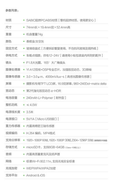 请到 以下楼 小蚁智能行车记录仪超高清1296P星光夜视,备有ADAS行车辅助 (太空灰) 的图片