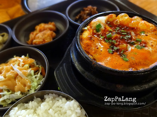 嫩豆腐锅的味道也一样没有我想像中的辣,这样也好,不然吃多了喉咙会不舒服。里头放了蛤蜊和虾子等海鲜,可惜鸡蛋不是半熟兼完整地在上面,而是碎了在汤里,看不到完整的鸡蛋黄就是感觉有点美中不足!