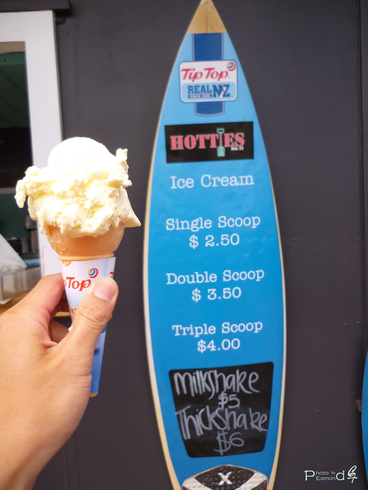 当天就在一旁沙滩吃了预先准备的午餐。在离开Hot Water Beach前还吃了一支雪糕,当作奖赏自己吧!!!