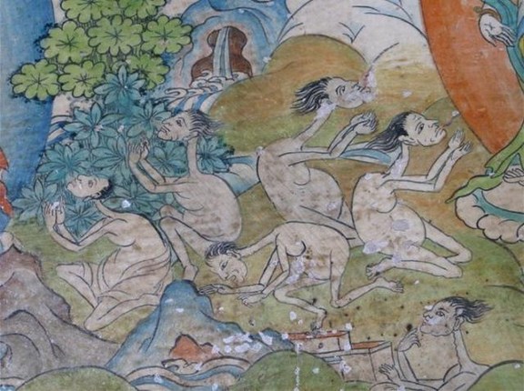 我们做烟烘,最大的功德是这些食气鬼,甚至各位你拜祖先的,拜神的东西,有一点点香气他们就会过来,所以,我们很鼓励大家点酥油灯,很香的牛奶味,点麻油灯,这些可吃的东西,布施这个味道给他们,甚至这些食气鬼,他们病苦很严重,所以,他们要做药供,也不是光食气鬼,后面有很多很多,叫火燃烧食鬼,食粪鬼,食风鬼,都是靠这些,不然他没得吃,但是我们是以这样让他暂时离苦,目的是要超度他。 所以,替他忏悔,皈依,佛力加持,让他脱离各种饿鬼,然后这种食气饿鬼,这种众生前世自己喜欢吃好的,但是不给周围的人吃,「不施妻子及余眷属」所以当他在吃的时候,旁边的人只能闻到味道,「妻子但得嗅其香气,不知其味」甚至在自己的亲人朋友面前自己吃,以这种悭贪嫉妒,所以「同业眷属,而不施与」又叫人家说:"好吃自己吃就好了,不要给周围的人吃。" 所以,这样来认为自己很棒,起随喜心,「数造斯过」所以,经常造了这种过失,而不懂得后悔,不生惭愧心,「如是恶人身坏命终,生于食气饿鬼之中」所以,佛叫我们,你只要在吃东西,就要布施这个味道给众生,供佛以后,光布施味道,可以吧,千万不要独食,悭贪独食,不是光你家人,你的周围都有无量无边的众生,你要喝一碗绿豆汤,甜甜的,那个蚂蚁最喜欢吃了,蟑螂也喜欢,旁边的孤魂野鬼也布施一点,不要悭贪,然后他们投胎做鬼了以后,一饥或渴,马上就喷火,所以,处处就奔跑,想要去找水。 「悲泣愁毒」然后越饥渴火就越强,所以,那时候他能依靠的,佛塔、庙,乃至有人在祭天,有信仰的人在拜天神,拜塔的时候,因为这个香气,乃至其他的香气,所以,我们点香,他们也会叫檀香鬼,他们也会来吃,这样才能够活,不是光活而已,他那个火才会停止,因为他一饥渴就喷火,他不饥渴就不喷火,所以「复有嗅气诸饿鬼」因为世间人很多人生病,然后生病以后,他们想说,唉呀!赶快去拜祭鬼神,这样就不会生病,所以,他们就在水边,林中,乃至有人的巷、陌、交道,各种地方设诸祭具,过去就这样,印度现在还是这样。 所以,烧东西或拜东西,这种香气,他们这些饿鬼才可以活,所以,如果按照这样讲,老实讲,你在这样做的时候,如果你以悲心故意这样做,你的病也会好起来。第三,如是食气诸饿鬼等,无量苦恼,恶业如果不尽,怎么样也不会死,不是说五百岁而已,而是很长寿,乃至恶业不尽,不坏,不朽,永远不能够解脱,所以,等他这种业报尽了,他才脱离这种食气饿鬼,免得被火烧,随业流转,受生死轮回苦,如果投胎做人,贫穷,多病,身体发臭,其他的业报要受种种的果报,所以,意思是告诉我们,所有好吃的,好用的东西,一拿出来,先供养三宝,先布施给周围的人,养成这个习惯。 但是现代人微微都有这种习惯,为什么,我买一栋房子很大,隔壁还是个小房子,我买一部车子很大,隔壁人家还没有好车子,还在骑脚踏车,他内心觉得,我赚很多钱,我很厉害,这还是属于这种心态,喜欢比较,用好的比别人用好的,今天你坐在大餐厅里面,一顿饭一千块,隔壁,前面是路边摊,你在那边吃觉得自己很伟大,吃一千块的,不用吃路边摊,这个还是属于这种嫉妒分别心在作怪,所以,内心里面连这个余习都要把它消除掉。