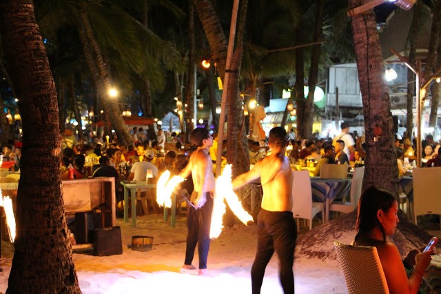 观赏火舞是长滩夜生活的must do。坐在沙滩的沙发上,一边喝着冰饮,一边吹着海风,看身材一级棒的帅哥美女在眼前上演有惊无险的火舞秀,这样一个精彩之夜一定难忘。