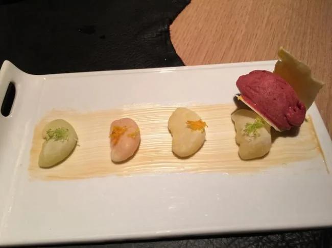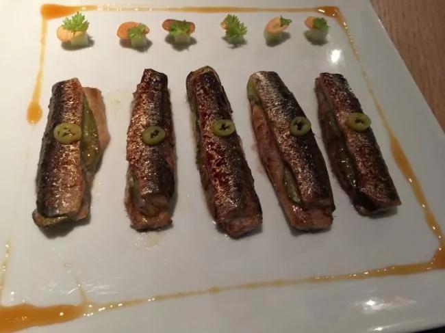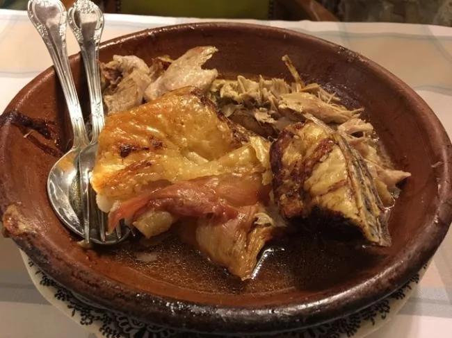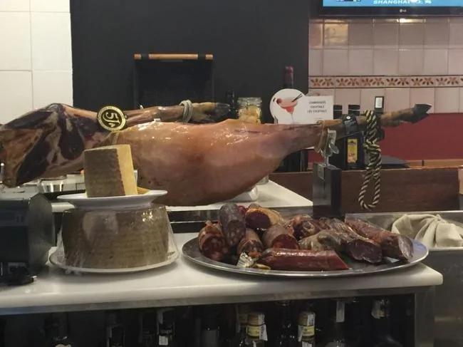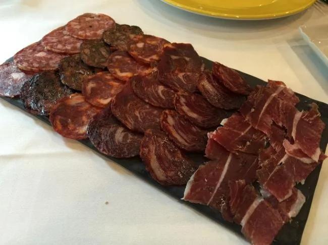 塞尔维亚火腿。 切片的伊比利亚火腿。 切片火腿、香肠、血肠大杂烩。 以斗牛尾巴为特色菜的饭店。 黑酱调制的斗牛尾巴肉。 杏仁露烹调鸡胸脯肉餐厅。 杏仁露烹调鸡胸脯肉。 36岁的西班牙餐厅连锁店大厨。 黄瓜小银鱼搭配小型苹果方块。 海螺、海参和羊鱼一起爆炒而成的黑米饭。 白菜酱汁伊利比亚火腿。 太妃糖中包有柑橘,以白巧克力作边饰,同时搭配冰冻水果汁。 蓝纹奶酪和炖樱桃调制后的小牛里脊肉用花生酱调味而成。 柴火炉烤羊羔餐厅。 柴火炉烤羊羔。 马德里餐厅特色菜——蘑菇。 黄油大蒜烹调的蘑菇。