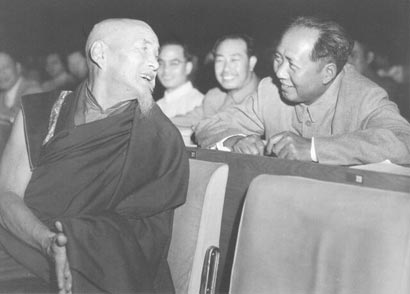 1917年夏,毛泽东利用暑假从事社会调查,在宁乡的一座寺院与方丈就佛教的一些问题进行了讨论。 毛泽东主席与喜饶嘉措大师亲切交谈 1917年夏,毛泽东利用暑假从事社会调查,在宁乡的一座寺院与方丈就佛教的一些问题进行了讨论。方丈问毛泽东:“佛教何以在中国千年不衰?”毛回答:“自然有人信它了。”方丈补充说,“第一,宗教提供了一种完整的人生哲学,对世间的普遍真理有重要的阐扬;第二,历史上中国的帝皇有宗教的天性或哲学倾向。”毛泽东对方丈第二个论点并不赞同,并提出自己的看法:“我以为不是天性,是维护其统治的需要。”这是毛泽东把佛教放在特定的社会历史背景之下进行分析得出的结论,说明青年毛泽东已经开始接受马克思主义的宗教观,对佛教的社会功能有了一定的认识。 在与方丈的谈话中,毛泽东对佛教是“一种完整的人生哲学”表现了认同。曾担任过毛泽东兼职秘书的李锐同志回忆说:“毛泽东曾一再自称他对佛学有兴趣研究,并且要求身边的工作同志读《六祖坛经》。但是,我们很难想象他真的会对讲求虚无寂灭的佛学有兴趣。他在《五灯会元》中看到的是阶级斗争而不是见性成佛。不过,‘文革’时的‘一治一乱’,‘天下大乱达到天下大治’,乃至‘文化大革命七、八年要来一次’,从中似乎可以看到佛教哲学的‘劫’和道家发展观的‘循环论’。”李锐的回忆似乎告诉人们这样一个信息:毛泽东对佛教的研究,扬弃了佛教“虚无寂灭”,汲取了佛教方法论方面的内容。 毛泽东曾对《金刚经》、《六祖坛经》、《华严经》、《般若波罗蜜心经》等佛学典籍进行了研读,特别是对中国化的佛教宗派禅宗更为关注。在学习研究之中,佛教的辩证思维曾影响了毛泽东,他在《<伦理学>批注》一文中说:“世上各种现象只有变化,并无生灭成毁也,生死也皆变化也,既无生灭,而只有变化,则成于此必毁于彼,毁于彼者必成于此,成非生,毁非灭也,生于此者,必死于彼,死于彼者,也生于此,生非生,死非灭也……宇宙之毁也亦然。宇宙之毁决不终毁也,其毁于此者必成于彼无疑也。吾人甚盼望其毁,盖毁旧宇宙而得新宇宙,岂不愈于旧宇宙耶! ”在毛泽东的哲学思想中,宇宙的生生不息,大千世界的瞬息万变,皆是“变化”,而把握住“变化”,就是把握了时机,就是掌握了主动权。通过对佛学的研究,毛泽东悟出了“毁旧宇宙而得新宇宙”是社会发展趋势的道理,看到了革命成功的希望。 佛学是一个庞大、深奥的知识系统,培养专门人才是一项艰苦的工作。中华人民共和国成立之后,毛泽东已经洞见培养专门的佛学人才对于提升佛教界的地位和声誉具有十分重要的作用,所以他在同班禅谈话时说:“我赞成(在西藏)有几千人学经、懂经,成为佛学知识分子,同时你看是不是他们还要学些社会科学、自然科学、懂得政治、科学、文化及一般知识……佛学不可不办学,办了佛学院,两年毕业,专弄政治,我看这个办法不行。得搞四年,专门拿四年研究佛学。光政治好,佛学上没有学问,还是不行的。”毛泽东不仅自己研究佛教,还动员佛教领袖开办佛学院,培养新一代有知识僧人,这其中反映出一位领袖的心胸和睿智。 在关于佛学的研究中,毛泽东还注意从中提取有价值的文化因子,并运用于社会实践,以此证明佛教与社会主义革命和建设并不矛盾。如毛泽东在1955年3月会见西藏宗教领袖达赖喇嘛时说过这样一段话:“我们再把眼光放大,要把中国、把世界搞好,佛教教义就有这个思想。佛教的创始人释迦牟尼主张普渡众生,是代表当时在印度受压迫的人讲话。为了免除众生的痛苦,他不当王子,出家创立佛教。因此,信佛教的人和我们共产党人合作,在为众生即人民群众解除压迫的痛苦这一点上是共同的。” 毛泽东用唯物史观和辩证法解读佛学,从而对佛教的普渡众生——拯救受压迫人民于苦难的献身精神进行了肯定,特别是“为众和”、“为人民解除痛苦”的理念,更是表现出佛教与共产党合作的可能性。因此,在对待西藏改革问题上,毛泽东从宗教和谐和祖国领土完整的思路提出了具体改革的方案:“我们要用一切努力和适当办法,争取达赖及其上层集团的大多数,孤立少数坏分子,达到不流血地在多年逐步地改革西藏经济政治的目的。” 在中国共产党的领导之下,西藏最终赢得了团结和稳定,中国人民赢得了和平和安宁。对于来之不易的民族大家庭和睦的局面,我们应该看到其中蕴涵着毛泽东关于佛教研究的真知灼见。
