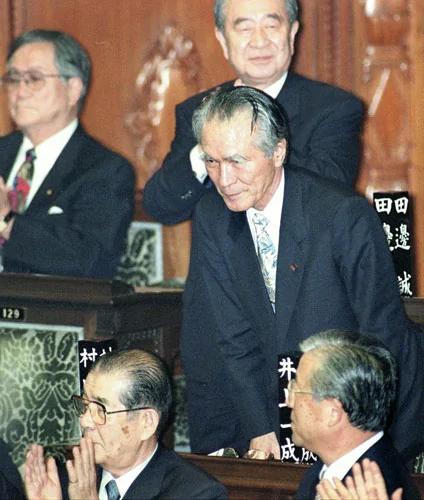 村山先生当选为日本首相时起身致谢(图片来源:网络)