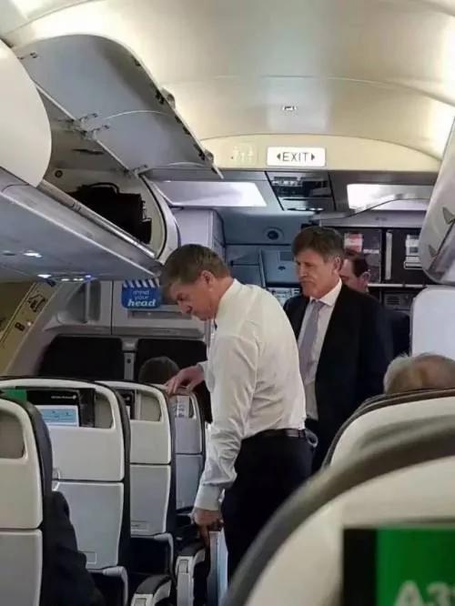 下图中身着白衬衫的男子正是新西兰总理比尔・英格利希(Bill English)。当时他似乎正在寻找自己的座位,被同乘的一位华人乘客看到,并拍摄下照片。据了解,当时这趟航班是从奥克兰飞往首都惠灵顿的。奥克兰是新西兰的第一大城市,但是首都是惠灵顿,也就是总理办公的地方,所以比尔.英格利希经常往返于奥克兰和惠灵顿之间。