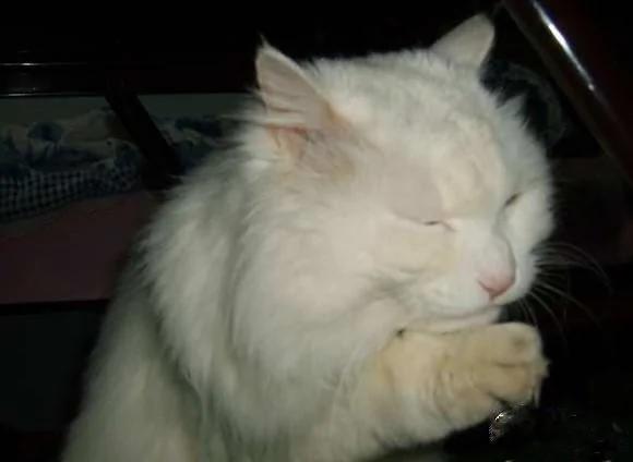 2015年,猫咪非常郁闷,不撒欢儿也不尥蹶儿了,闹情绪睡大觉。猫咪怎么啦?我们感觉有些不对劲,它是不是太老了?但它牙没掉一颗,也不流口水,也没出眼屎,没有衰老的迹象啊。但它毕竟17岁了,家人个个都很担心。