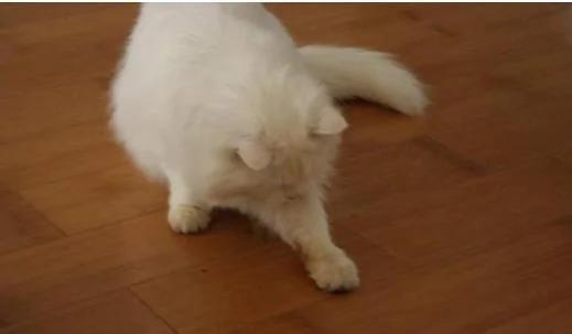猫咪平时喜欢乒乓球,主人拿起球撂给它,当乒乓球从地板上弹起来的时候,猫咪突然倒在地板上,四腿抽搐,瞳孔散大,眼看四肢变得僵直了。