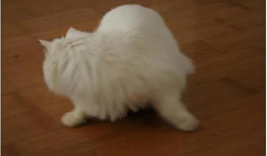 我家过去养的叫笑笑的猫猫很灵活,一蹦能蹦一两米高,可这只咪咪特笨,很少看见它跳,尽管经常训练它,笨拙的身体怎么也灵活不起来。