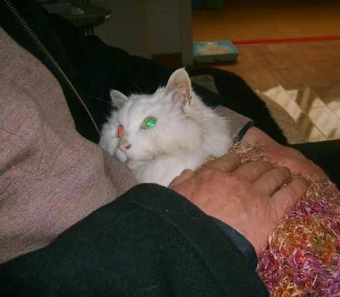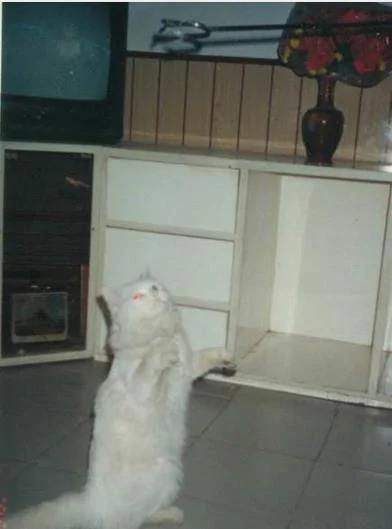 1999年春,从亲戚家抱来一只近一岁大的白猫,纯白长毛,两只眼睛大大的,时而一红一兰,时而又一黄一绿,炯炯有神。因它已习惯“咪咪”的称谓,所以来后也没再改名。