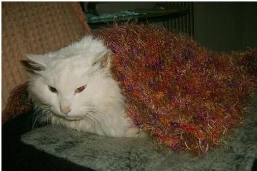 过年过元宵节全家人格外照顾它:给它吃牛肉吃鸡吃鱼。怕它冷,下面垫上毛垫子,身上盖上毛披肩。