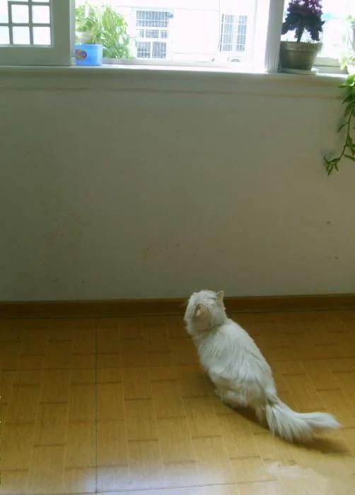 以前它纵身一跃便可轻松地跳上窗台。今天却走近窗下,向上望了望,打量一下窗台的高度,还得先攒攒劲。