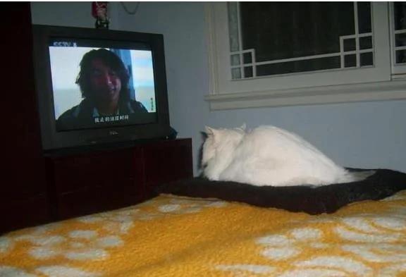 从前主人不让它到床上来,现在主人把它抱上床,它可以放心大胆,地卧在床上看电视了。