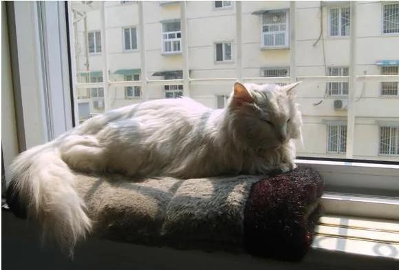 如血的残阳透过玻璃窗流进来,用棉垫把猫咪兜到阳光下,最后再让它享受一下这美好的夕晖。