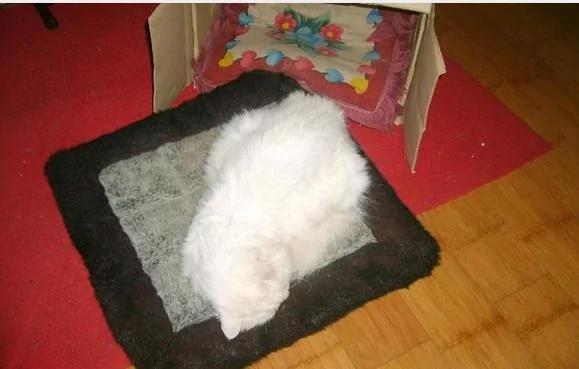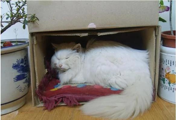 给它准备的窝是一个垫了棉垫的纸箱,它从来也没进去过,现在它跳不动了,主人把纸箱放倒,使它可以直接走进去,它便主动去那里睡了,因为它已经爬不到沙发上去了。