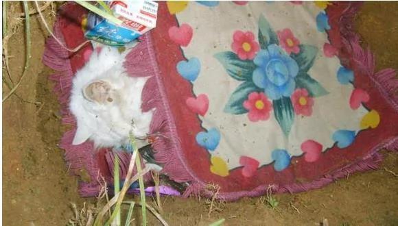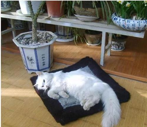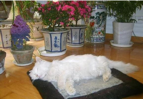 夕阳西下,猫咪洒在棉垫子一点尿,依偎在美丽的花下心脏停止了跳动。这是它平时最常光顾的地方。没有惨叫,也没有垂死挣扎。无疾而终,真正是寿终天年。