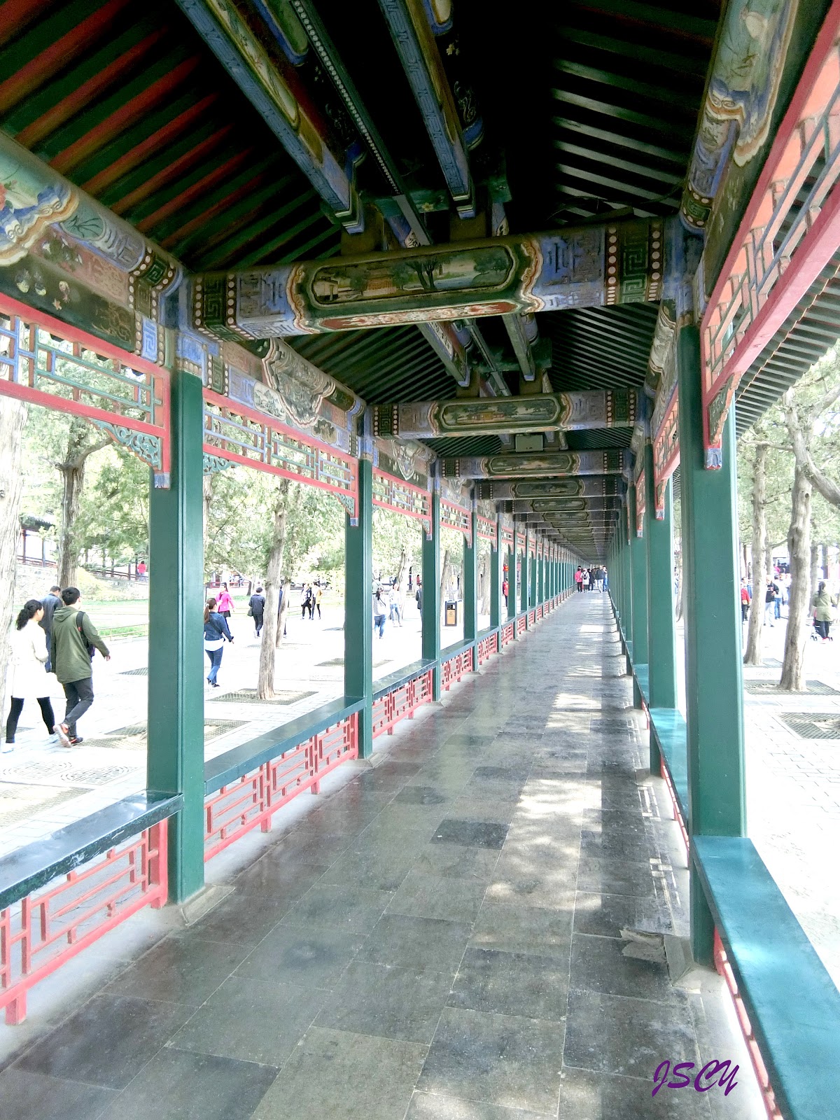 长廊沿着昆明湖由东向西延伸,走在长廊上,吹着习习凉风,欣赏昆明湖景色,堪称一绝。