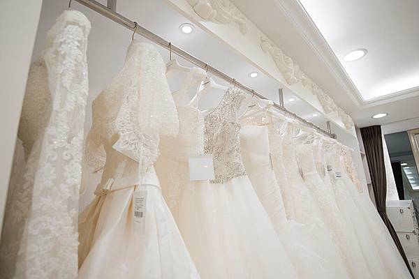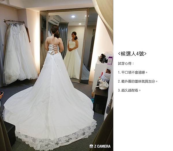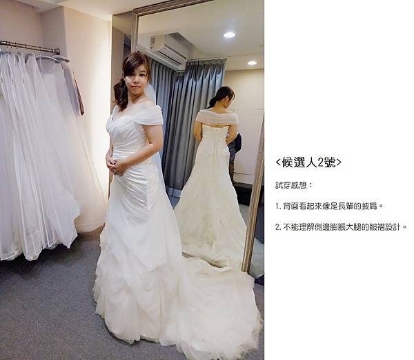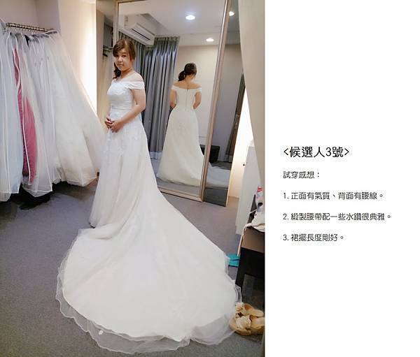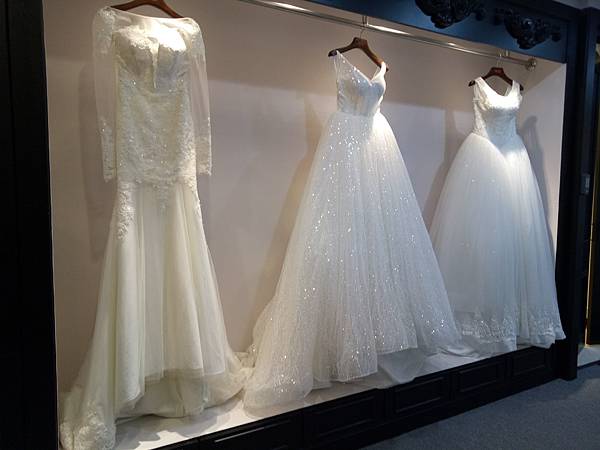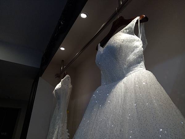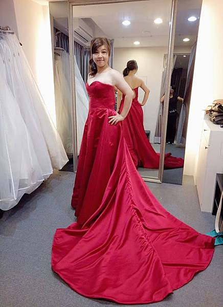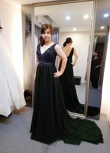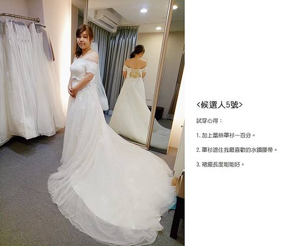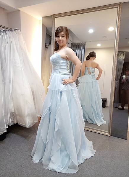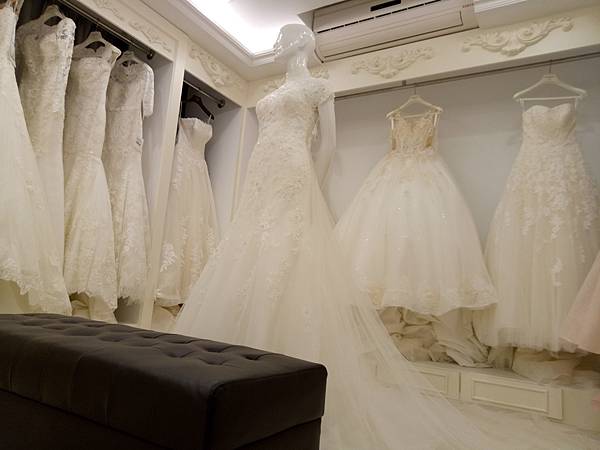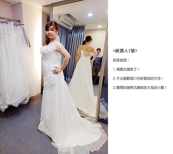 第三家跑到茱莉亞精品婚紗,也是唯一一家直接帶我試穿禮服的婚紗公司,門市艾容染了一頭超顯眼的綠色頭髮,一度以為是髮型師,結果居然就自我介紹說是我的門市顧問XD 有趣的是,那天因為要搶五月天的演唱會門票,艾容還大方出借她們的電腦,自己也用手機幫我搶票,覺得貼心。但不得不說,茱莉亞的 婚紗真的很厲害 ,只是隨便套上一件,就有好像其實不用減重的感覺,超顯瘦XDDDD