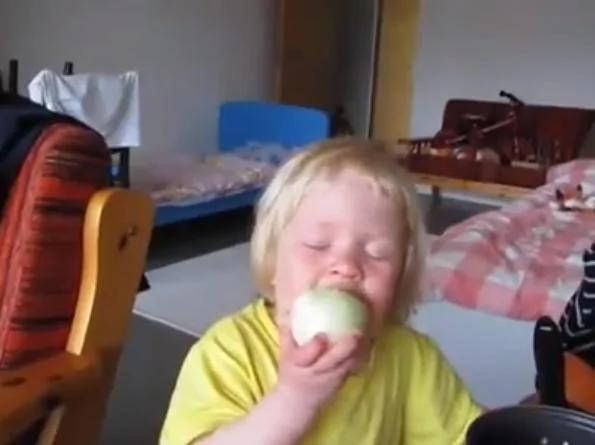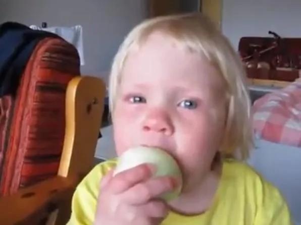 可爱!德4岁女娃“吃苹果”遭4千多万网友围观原来她吃的是洋葱