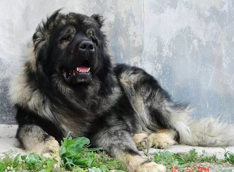 Ovcharka。身高约65-86厘米,体重约70-81公斤,原产地俄罗斯境内的车臣和高加索山脉一带。高加索犬是世界上体形最大的猛犬之一。此犬虽然凶猛无比但对主人的忠诚度较高,喜欢和主人亲近。高加索山犬属超大型犬,外表强而有力,肌肉组织强壮,身体结构结实。皮肤厚实且富弹性。头盖骨宽阔,骨骼发育良好。额头宽阔平坦。面罩比额头较短,且逐渐尖细。大多呈黑色深色眼睛,大小适中。鼻大而长,大多呈黑色。耳朵覆盖着中等披毛,耳朵通常都被修剪过,短而下垂。身型壮硕,胸部厚实,骨架子大,肌肉发达、身体高背部呈协背至水平状。四肢强壮,足部大且微拱,呈椭圆形。足趾紧密。。尾巴毛量浓密,位置稍高,垂下时可及脚踝关节,可向上弯区高举或一侧弯曲。披毛自然且粗糙,生长良好的底毛则较薄。头部和四肢前端的披毛,既短且贴近身体,有长毛和短毛之分。毛色一般是浅灰至红褐色调,也有淡黄色、黄色、白色、斑纹、斑点和双色等多种混合颜色。高加索山犬身躯强壮,抗病力强,性情勇猛,沉着稳定,警觉性高,有灵敏的直觉,个性意志坚强充满自信,忠顺于主人。最适合看家护院,守卫别墅,仓库,农场或牧场,但不实在适合一般家庭饲养。
