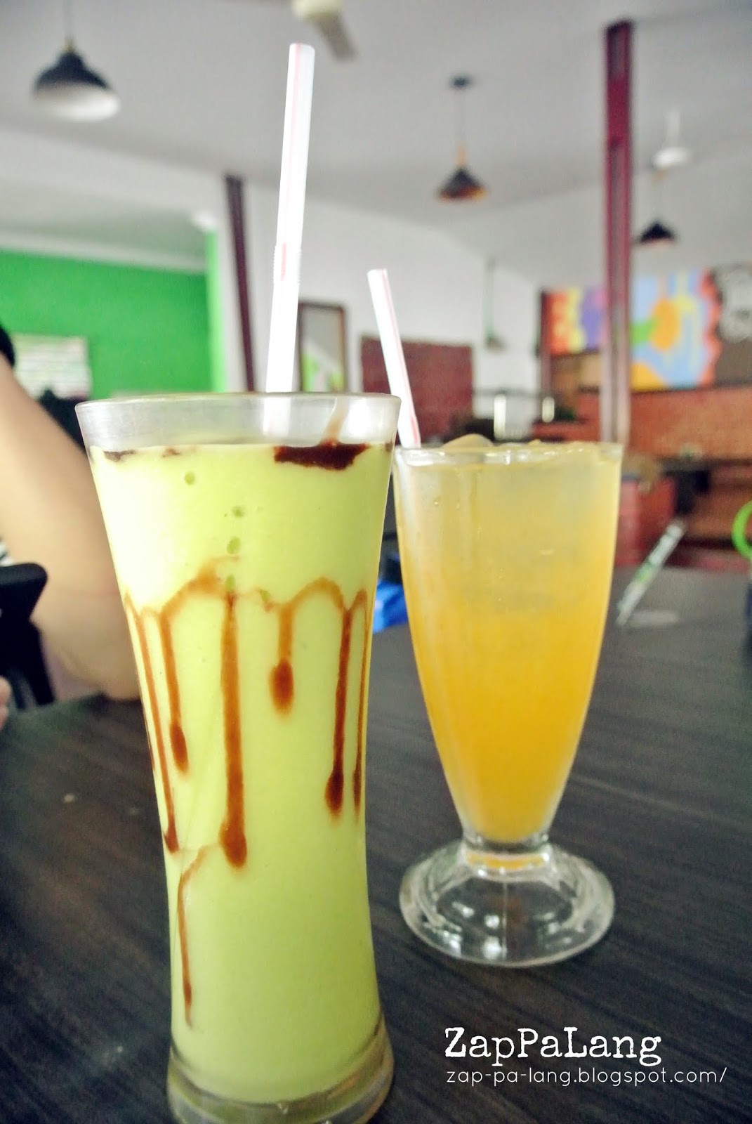 | Avocado Juice (Left)- IDR15000, Es Jeruk (Right)- 10000 | 右边的这杯其实就是我们常在泰国看到的青皮桔榨成的果汁,没有添加任何的糖,感觉很健康,不过我个人还是比较偏好橘子果汁的味道。左边的不用说就是我无条件爱上的巧克力牛油果,非常香滑,不过巧克力稍嫌不够。