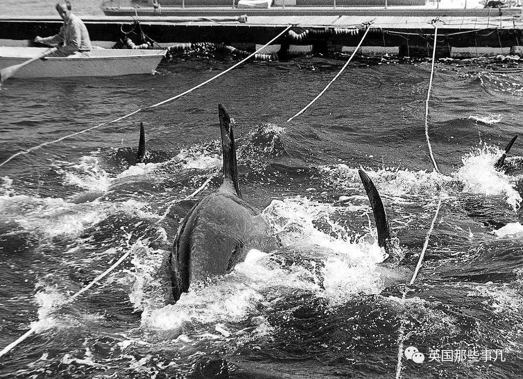 2到7岁的虎鲸是最适合抓捕后送去训练表演的,捕鲸团队的目标就是这些幼虎鲸,抓到后把它们卖给各大海洋馆….