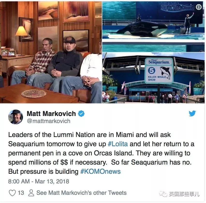 “Lummi部的领袖们已经呼吁海洋馆未来放弃圈养Lolita让它永久重返Penn湾。