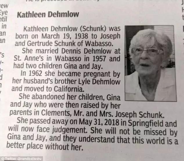 可以说这个讣告是为了羞辱他们的母亲,才会被刊登的。当时看到了这则讣告,很多网友都表示惊呆了。