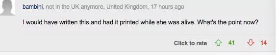 “看看现在的报纸发布的都是些什么东西,我简直不能理解,为什么人们要变得如此充满仇恨和戾气,希望这个老太太可以得到安息。”