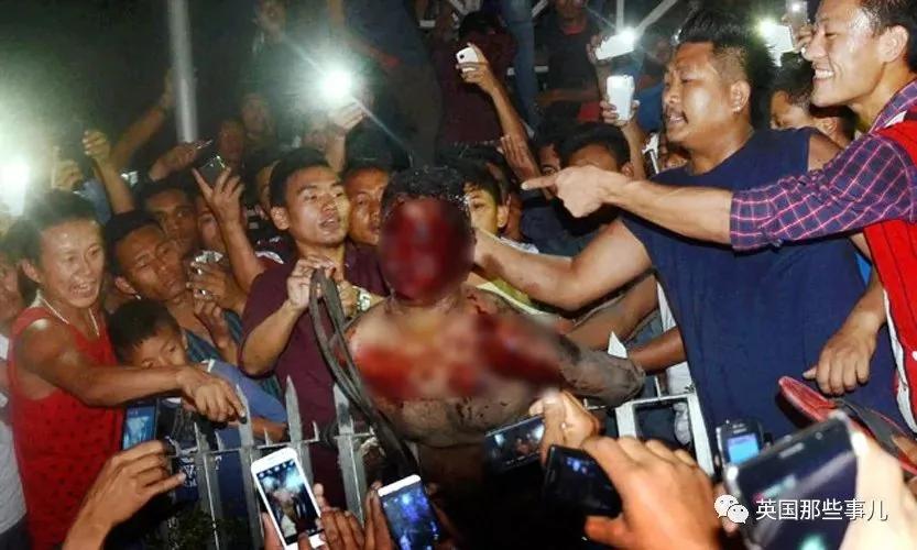 于是人群开始围着他殴打,用棍子敲,用烟头烫,最后把他打死了才停手..